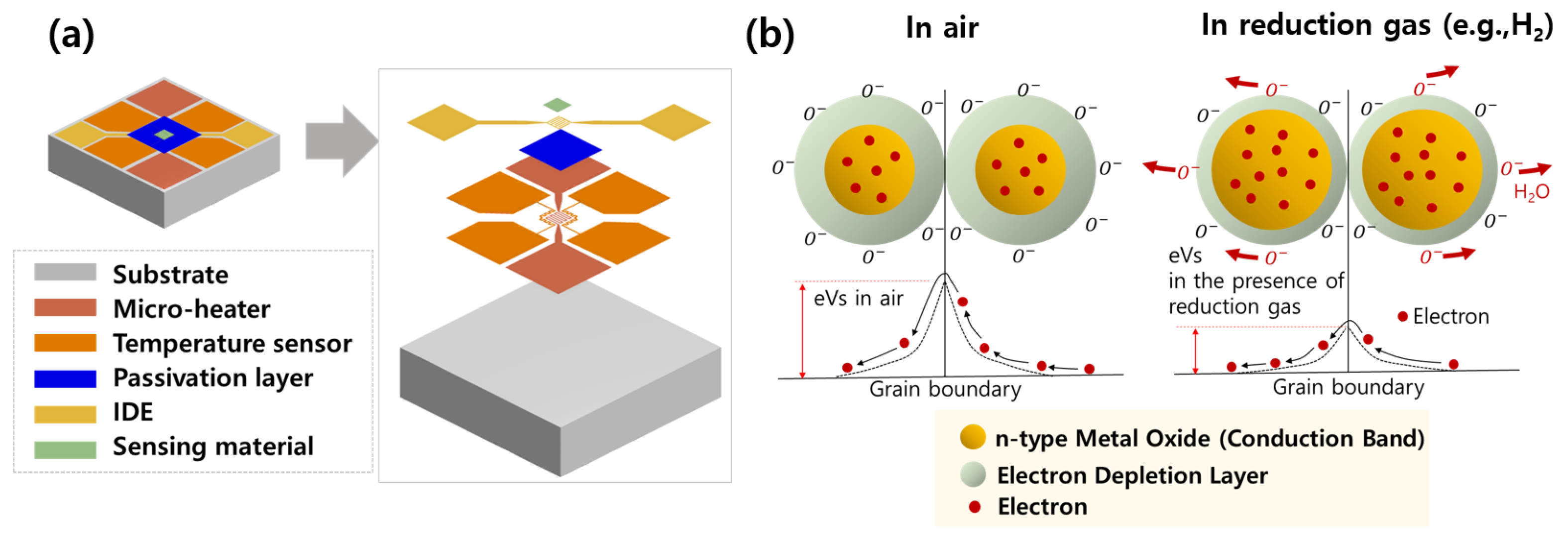 - Ji, H.; Zeng, W.; Li, Y. Gas Sensing Mechanisms of Metal Oxide Semiconductors: A Focus Review. Nanoscale 2019, 11, 22664–22684. [Google Scholar] [CrossRef] [PubMed]