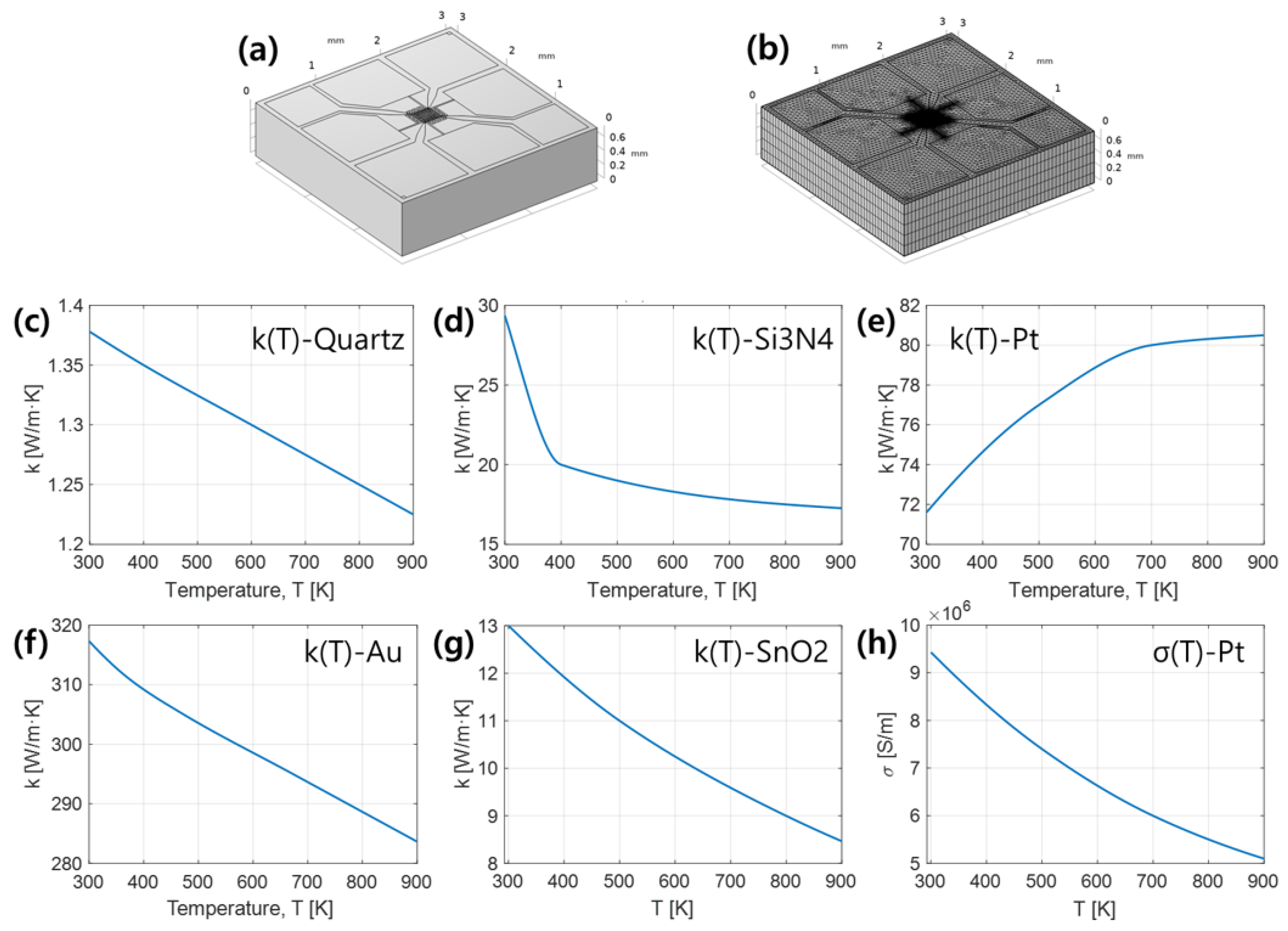 - Abdeslam, A.; Fouad, K.; Khalifa, A. Design and Optimization of Platinium Heaters for Gas Sensor Applications. Dig. J. Nanomater. Biostruct. 2020, 15, 133–141. [Google Scholar] [CrossRef]