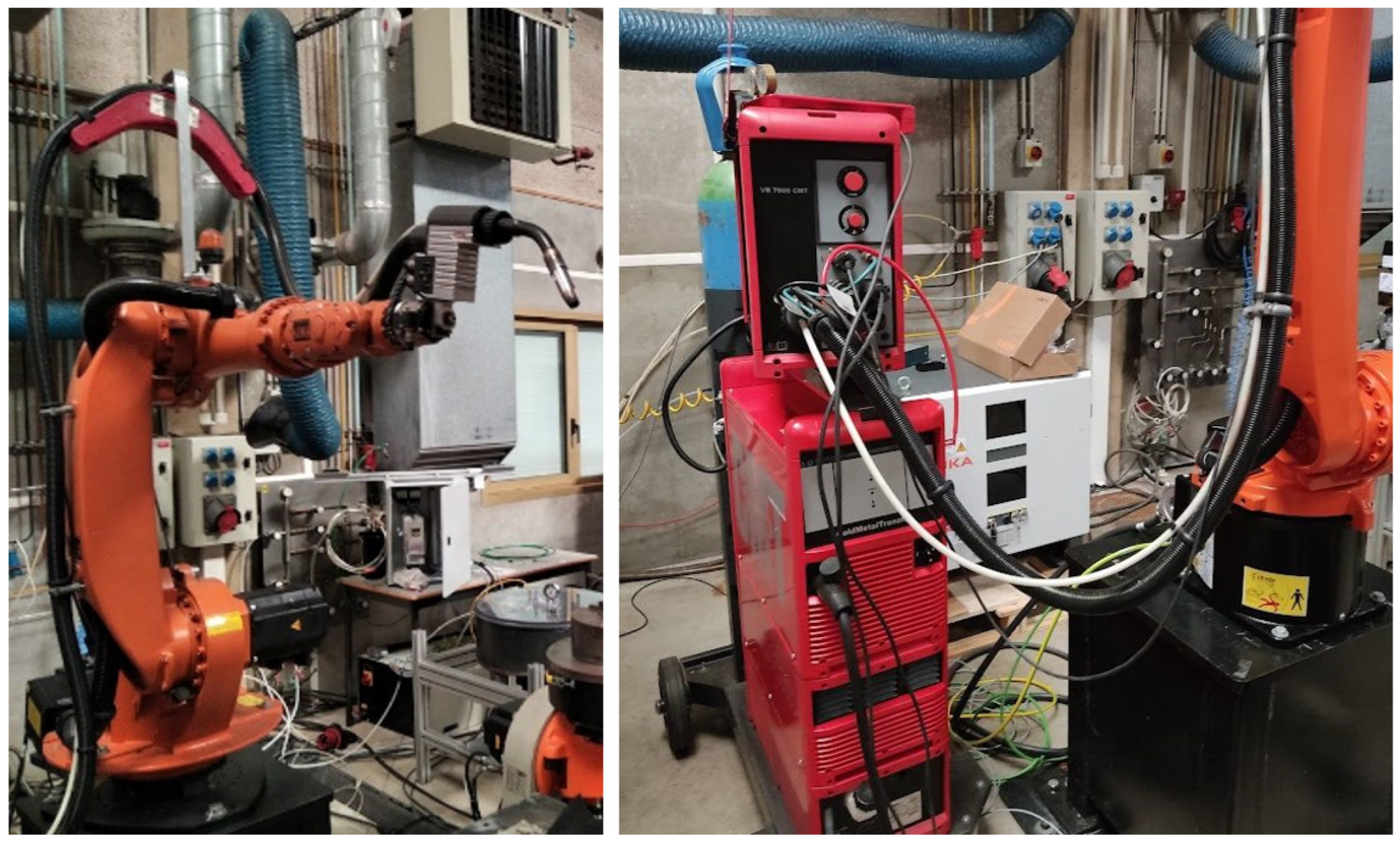 - Baccomo, A.; Chanal, H.; Duc, E.; Limousin, M. A method for analyzing the kinematic influence of a robot on the WAAM process. Int. J. Adv. Manuf. Technol. 2025, 136, 4239–4255. [Google Scholar] [CrossRef]