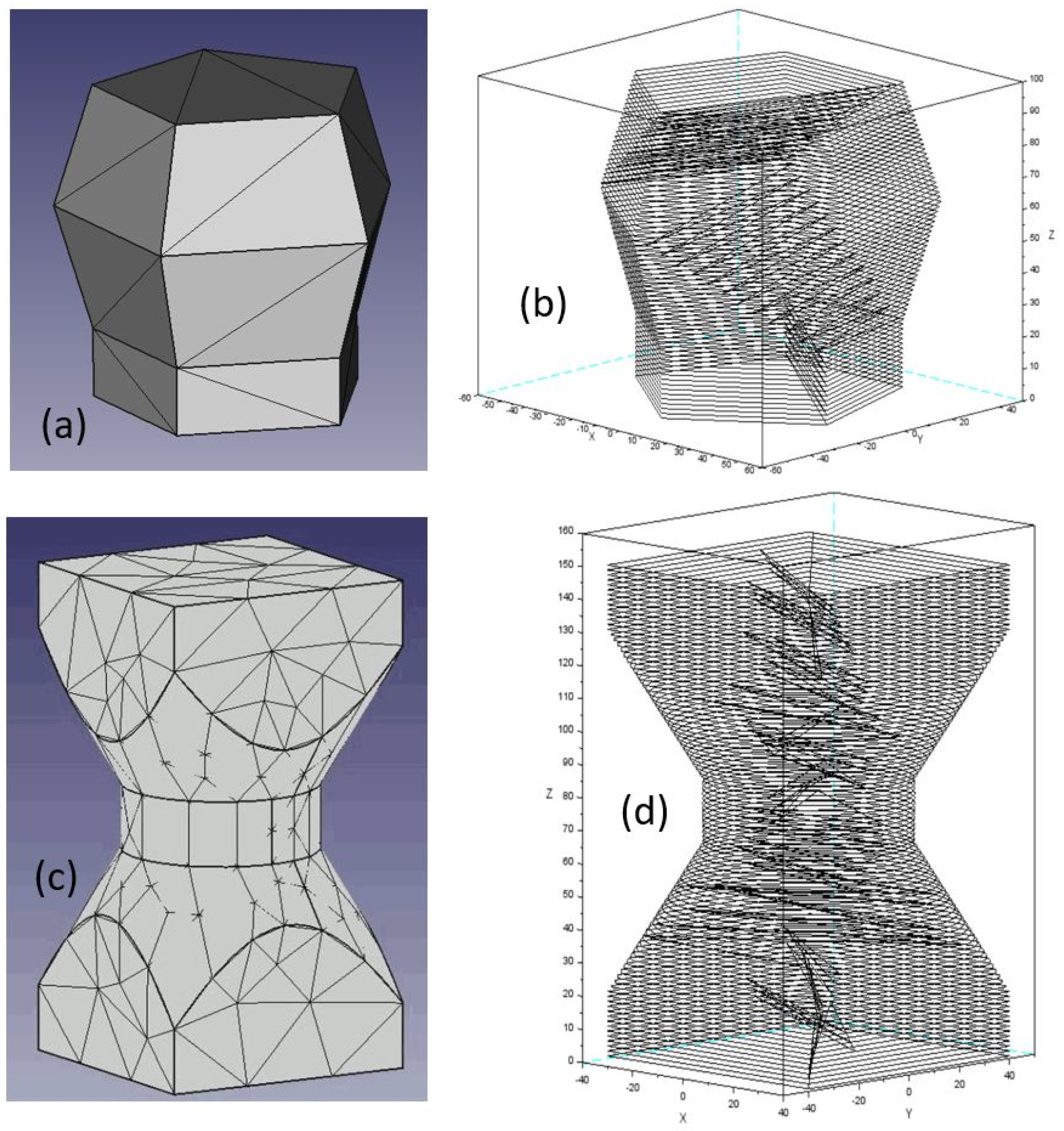 - Ding, D.; Pan, Z.; Cuiuri, D.; Li, H.; Larkin, N.; van Duin, S. Multi-direction slicing of STL models for robotic wire-feed additive manufacturing. In Solid Freeform Fabrication Symposium; The University of Texas at Austin: Austin, TX, USA, 2015; pp. 1059–1069. [Google Scholar]