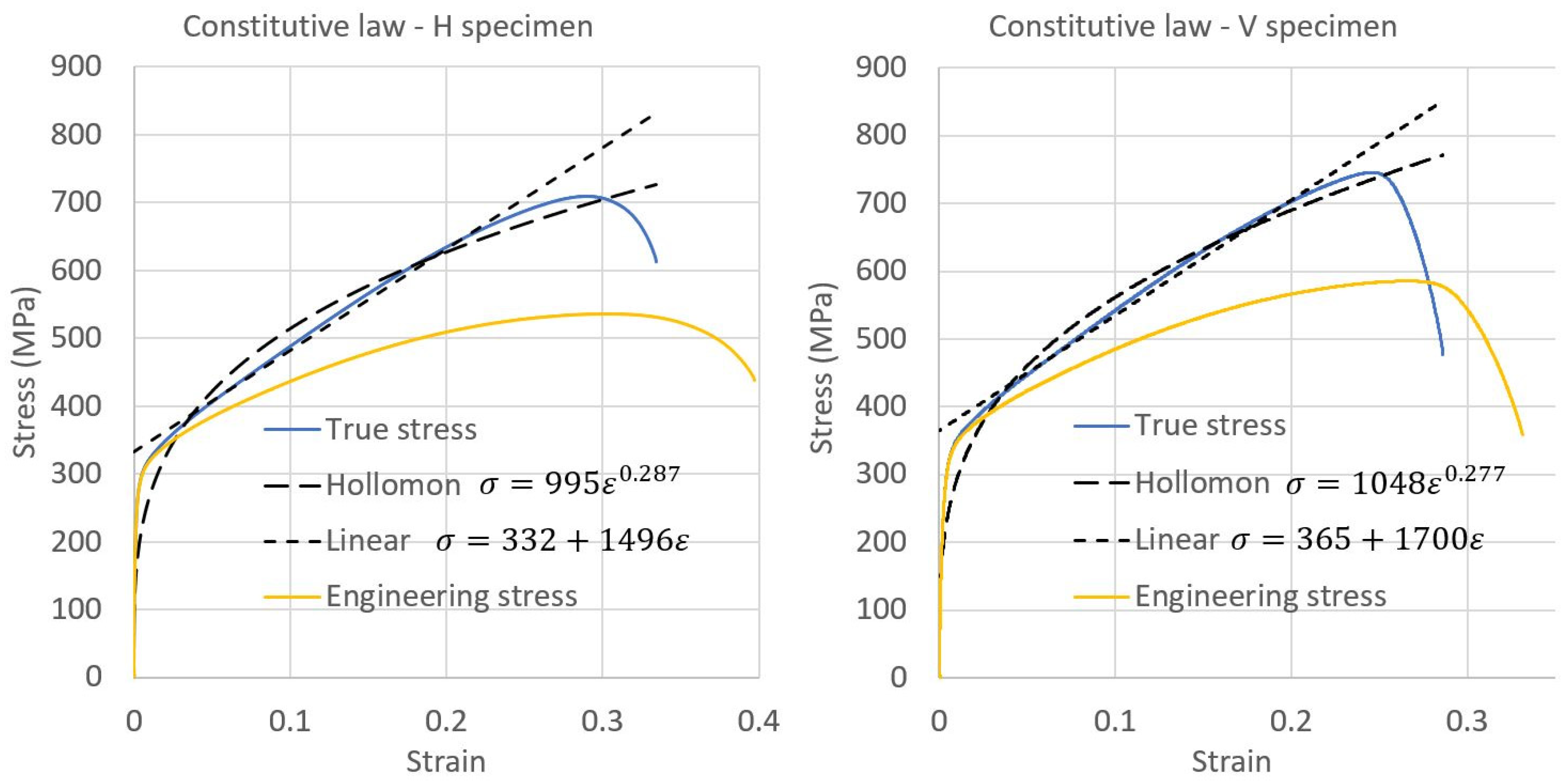 - The Hollomon law, commonly used to predict the strain hardening behavior.