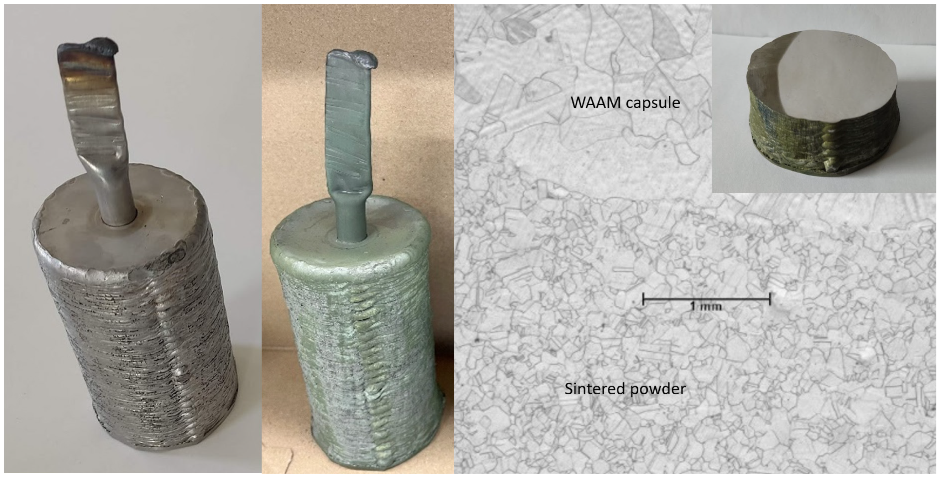 2.4. Hot Isostatic Pressing of Powder with a WAAM Capsule