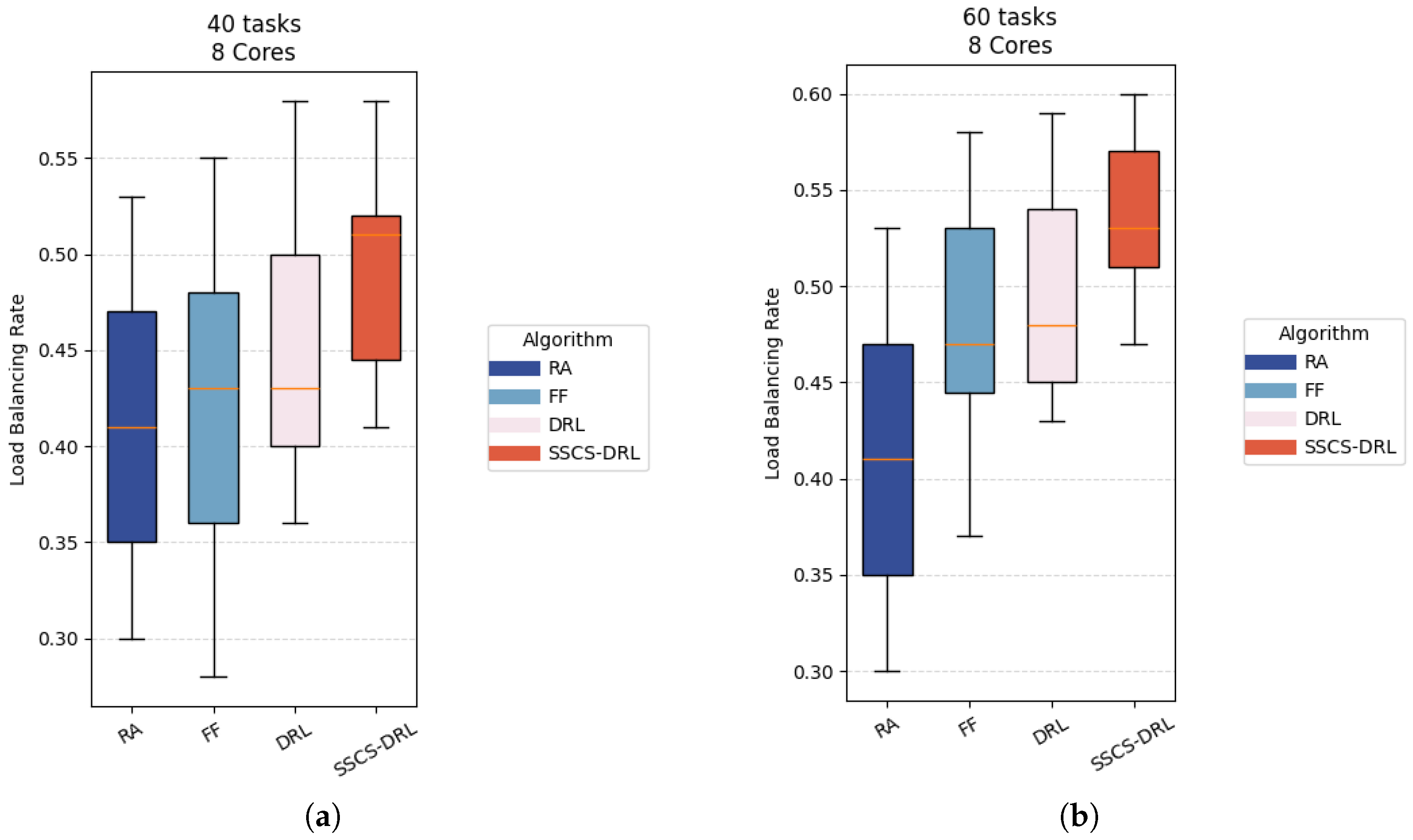 - Jadon, S.; Kannan, P.K.; Kalaria, U.; Varsha, K.; Gupta, K.; Honnavalli, P.B. A comprehensive study of load balancing approaches in real-time multi-core systems for mixed real-time tasks. IEEE Access 2024, 12, 53373–53395. [Google Scholar] [CrossRef]