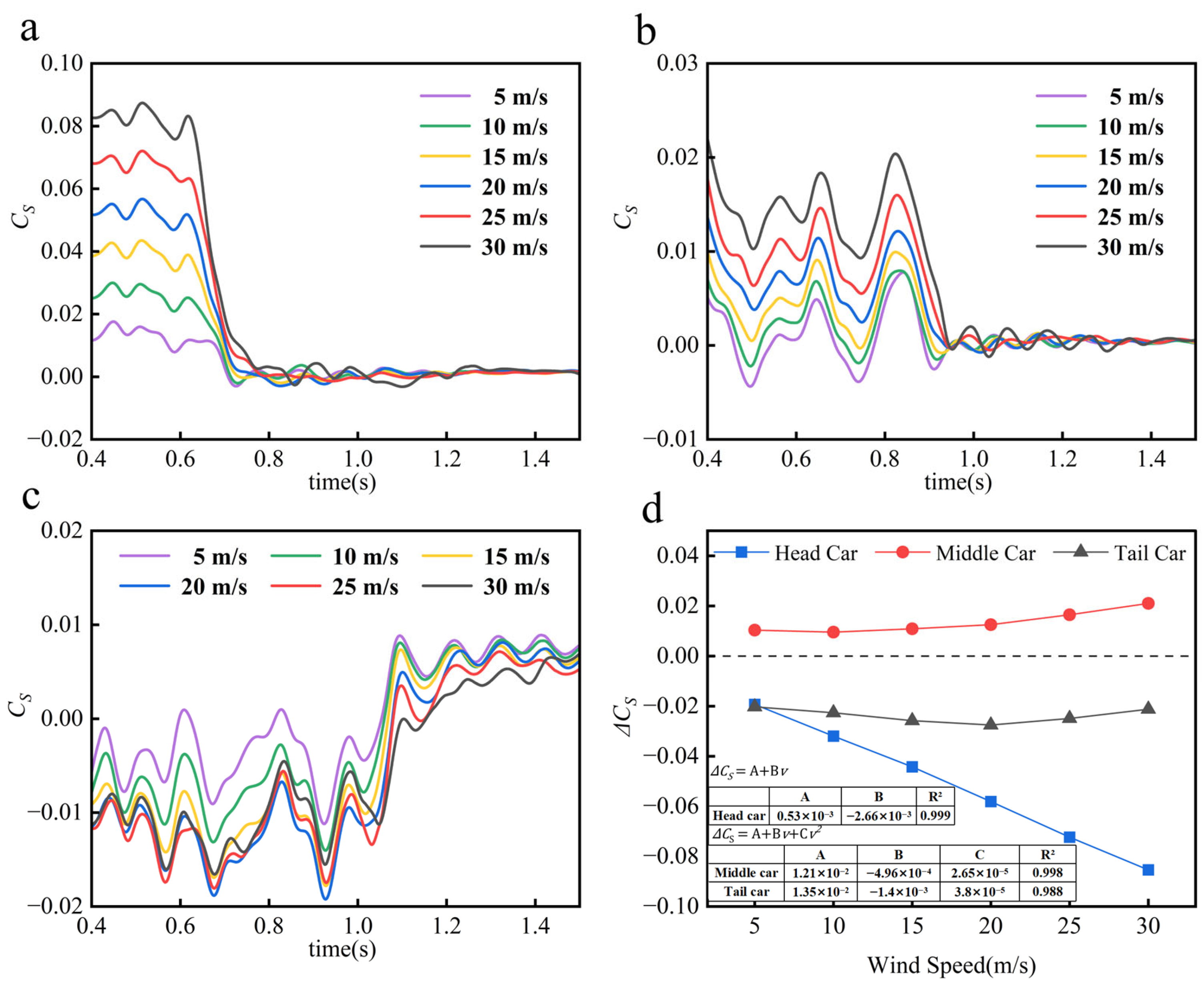 4.3.2. Effect of Crosswind Speed on Aerodynamic Lateral Force of Trains