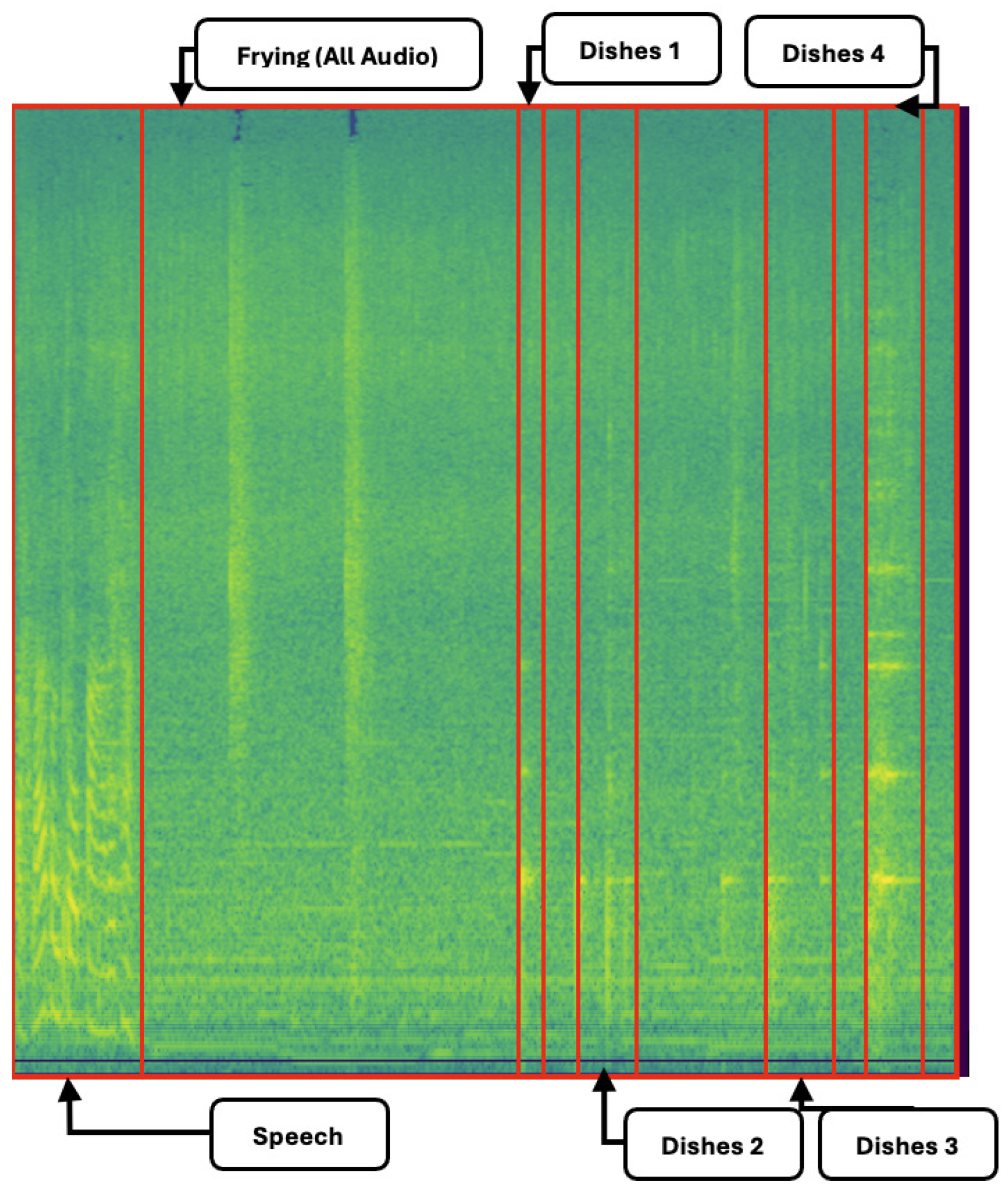 Table 5 is that the inclusion of more complex subsets produces catastrophic forgetting, especially for very short events, but even for intermediate events. Decrease in performance obtained for some classes is particularly noticeable when subset S.4 (the first including overlapping) is included in training. It is also noteworthy that the long-duration events such as shave/toothbrush, frying or running water do actually improve with this subset. This pattern is consistent with multi-scale feature learning: YOLO’s pyramid better preserves long-extent patterns but short, high-sparsity footprints remain vulnerable when overlap is introduced. Hence, we observe partial catastrophic forgetting for short events under overlap, despite overall gains for long events. A possible cause for this behavior could be that the long-duration events are masking the short-duration events and confounding the model when learning the short-duration events. This limitation of the YOLO models to deal with short-duration events and learning from short-duration events overlapped with other events needs to be addressed in future research.