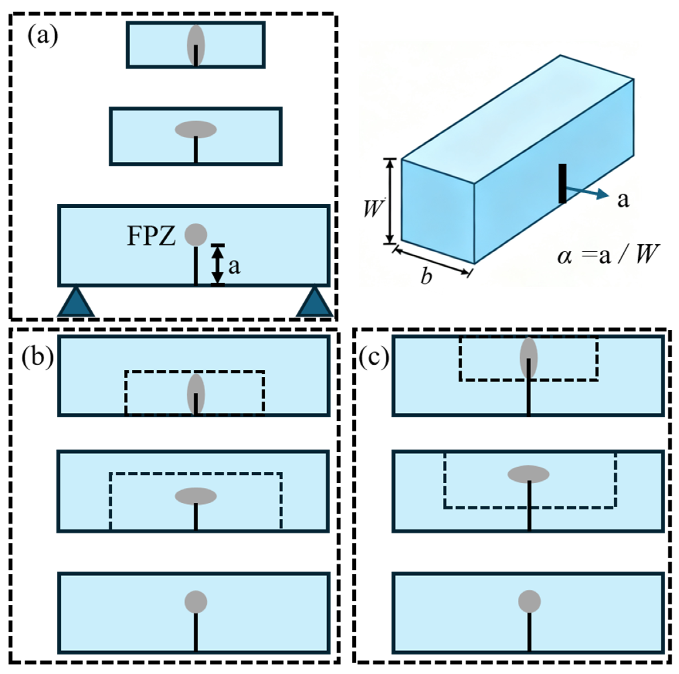 - Hu, X.Z.; Duan, K. Size effect and quasi-brittle fracture: The role of FPZ. Int. J. Fract. 2008, 154, 3–14. [Google Scholar] [CrossRef]