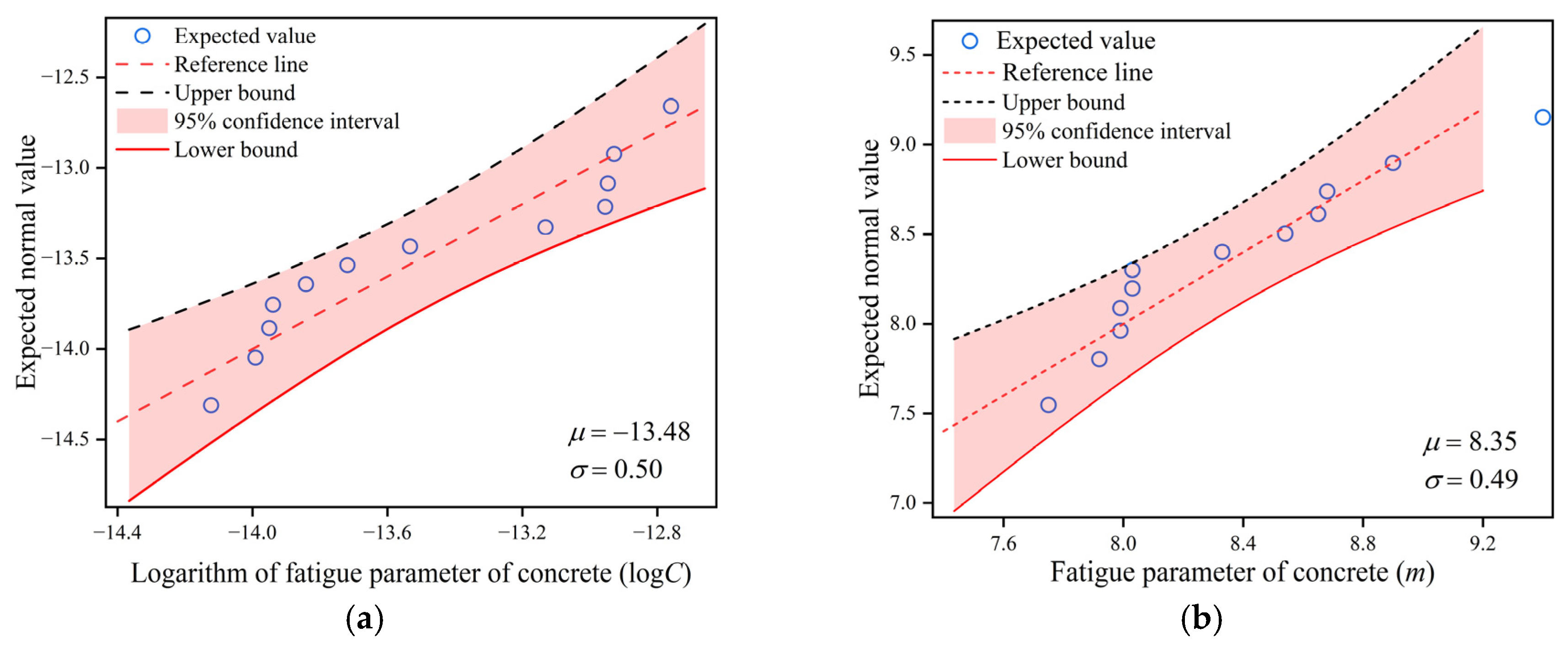 - Miarka, P.; Seitl, S.; Bílek, V.; Cifuentes, H. Assessment of fatigue resistance of concrete: S-N curves to the Paris’ law curves. Constr. Build. Mater. 2022, 341, 127811. [Google Scholar] [CrossRef]
