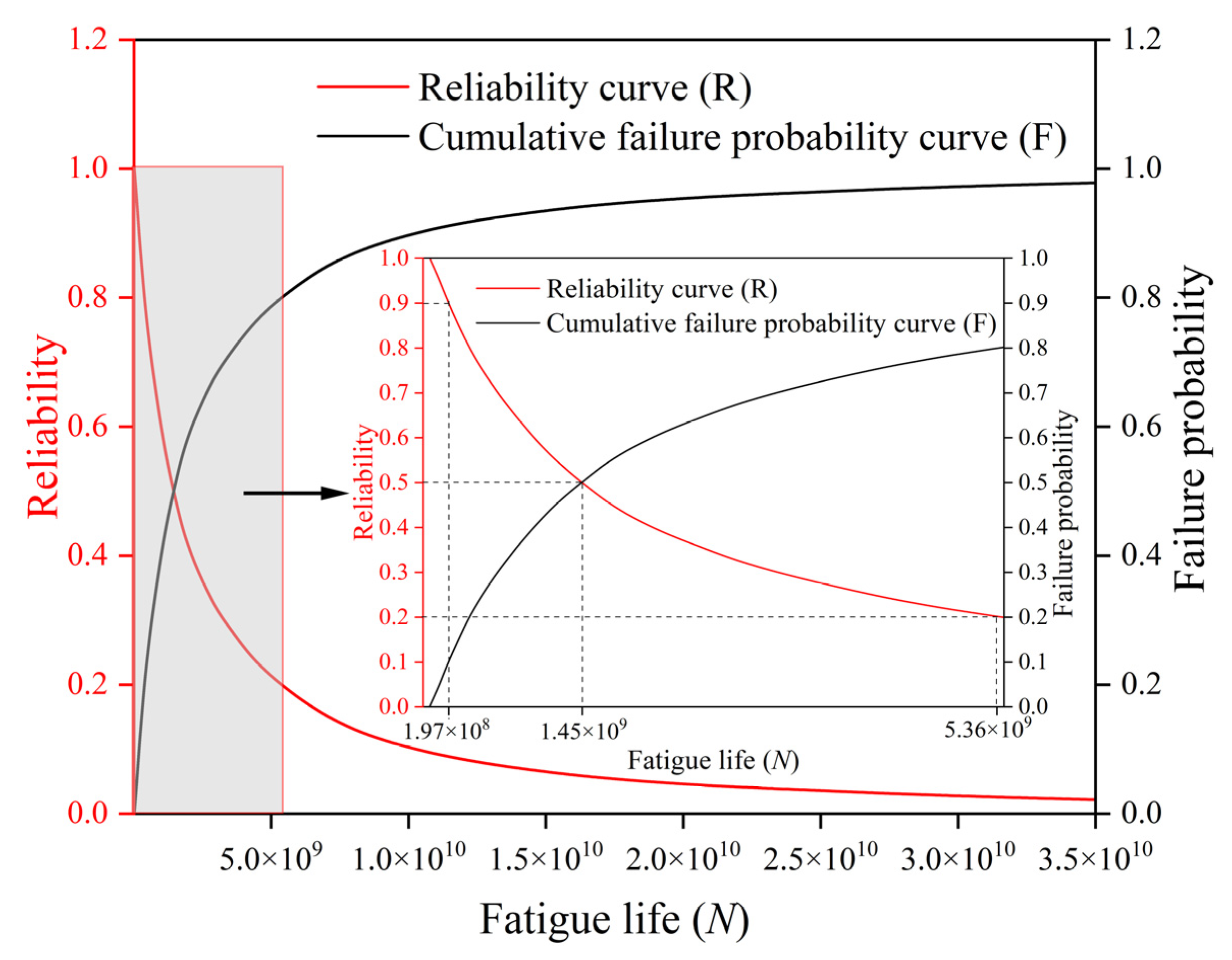 | Reliability (R) | Fatigue Life (Cycles) | Service Time (Years) |