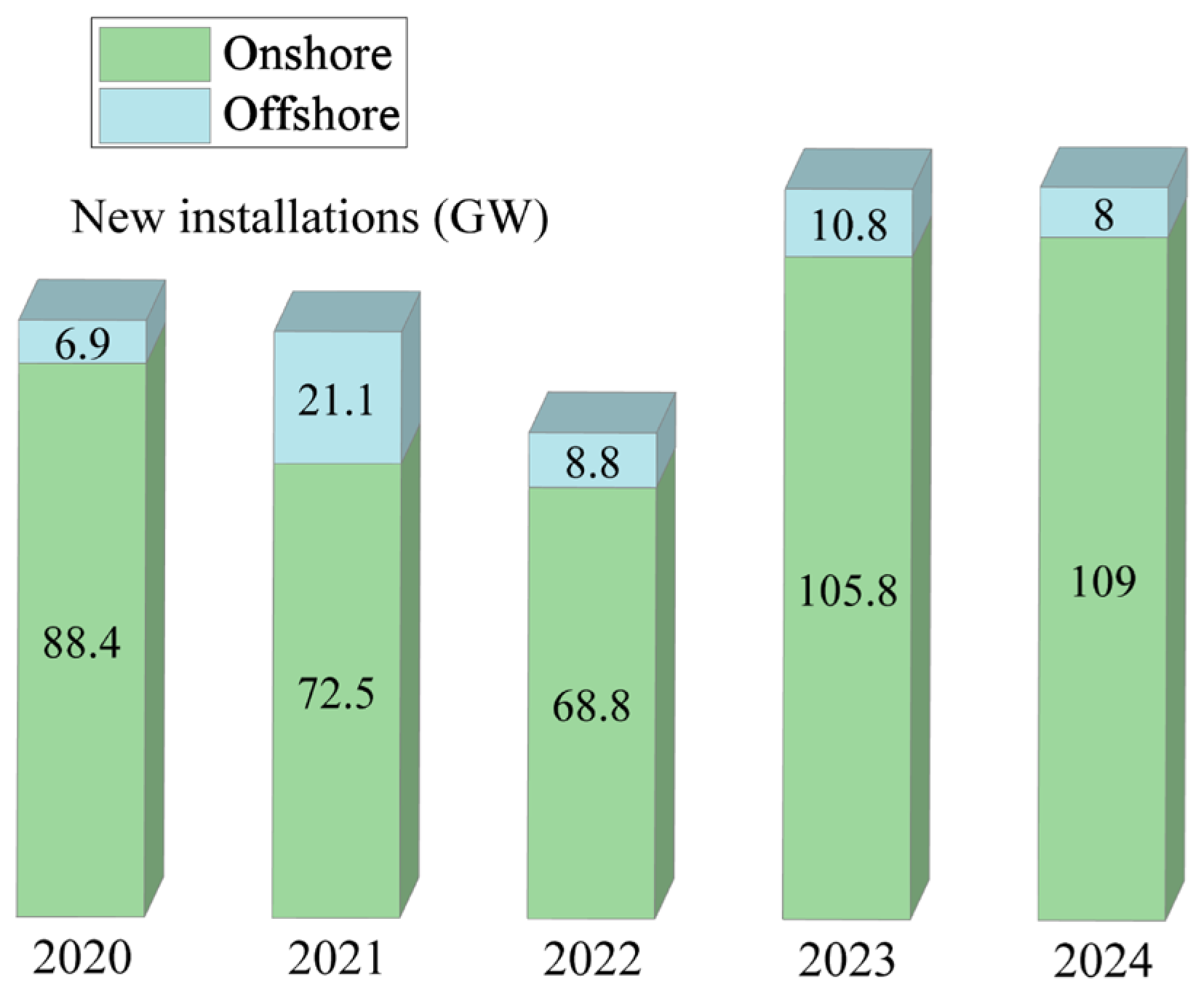 3], newly installed global wind capacity reached a record 117 GW in 2024, while cumulative grid-connected offshore wind capacity reached 83.2 GW (