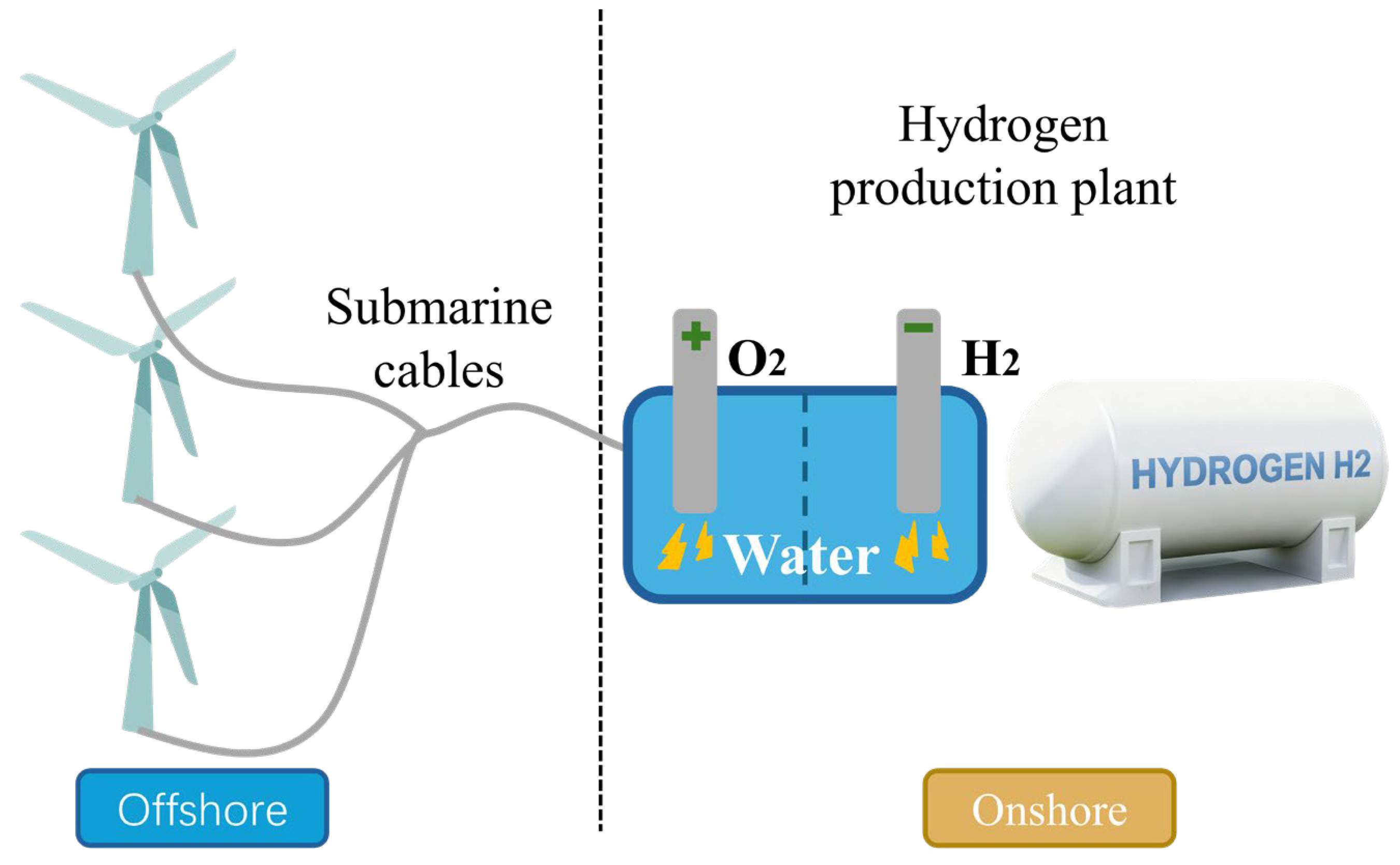 The third route is the onshore hydrogen production system powered by offshore wind power (