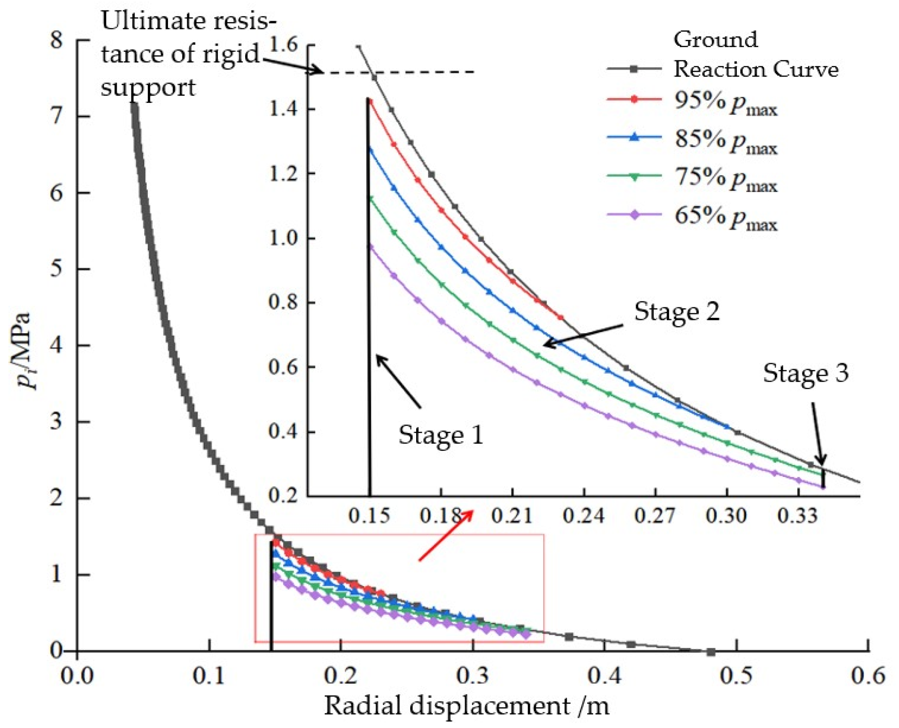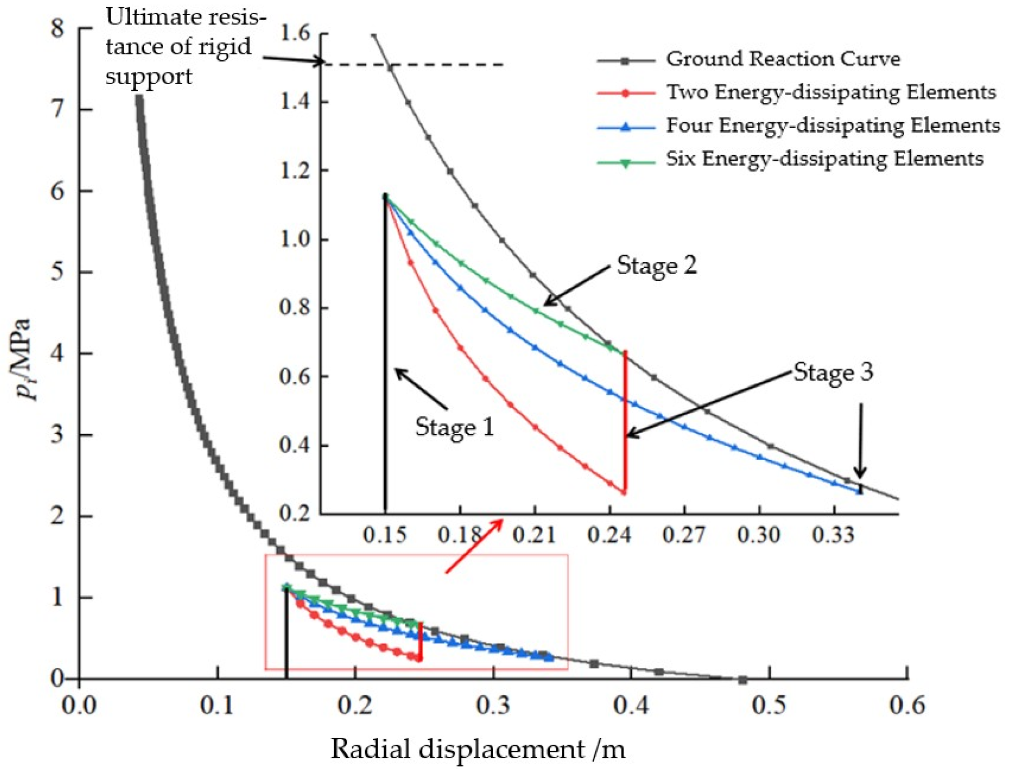 - A high initial stiffness stage, suppressing rapid loosening of the surrounding rock;
