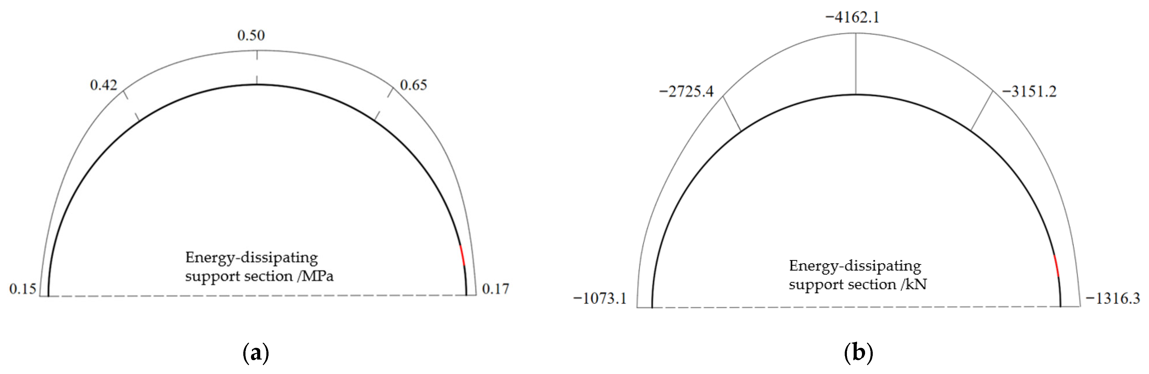 - For tunnels under different in situ stress conditions, obtain the surrounding rock stress field and the internal force distribution of the primary support through numerical simulation or field monitoring.