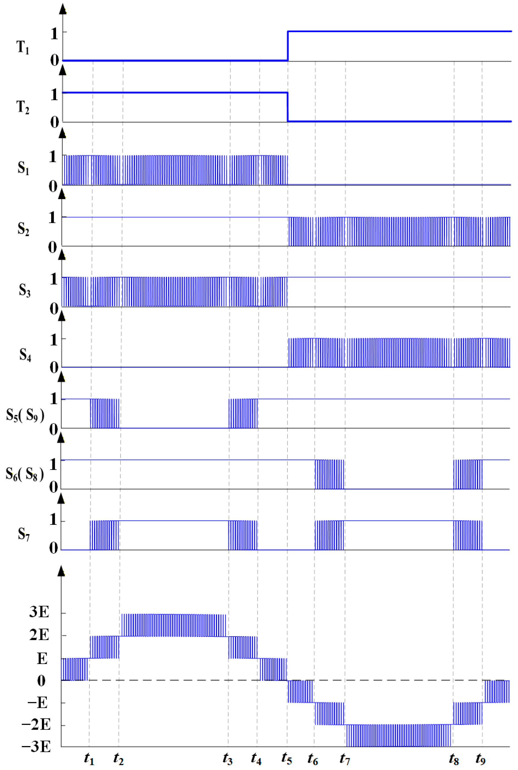 | Switching devices | T1 off T2 on | T1 on T2 off | T1 off T2 on | T1 on T2 off | T1 off T2 on | T1 on T2 off |