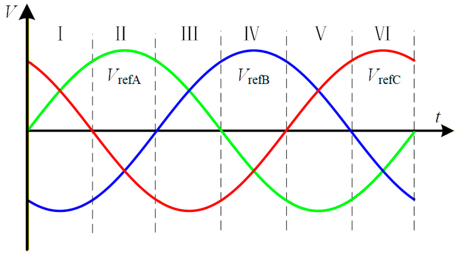 | Condition | VrefA > 0 VrefB < 0 VrefC > 0 | VrefA > 0 VrefB < 0 VrefC ≤ 0 | VrefA > 0 VrefB ≥ 0 VrefC < 0 | VrefA ≤ 0 VrefB > 0 VrefC < 0 | VrefA < 0 VrefB > 0 VrefC ≥ 0 | VrefA < 0 VrefB ≤ 0 VrefC > 0 |