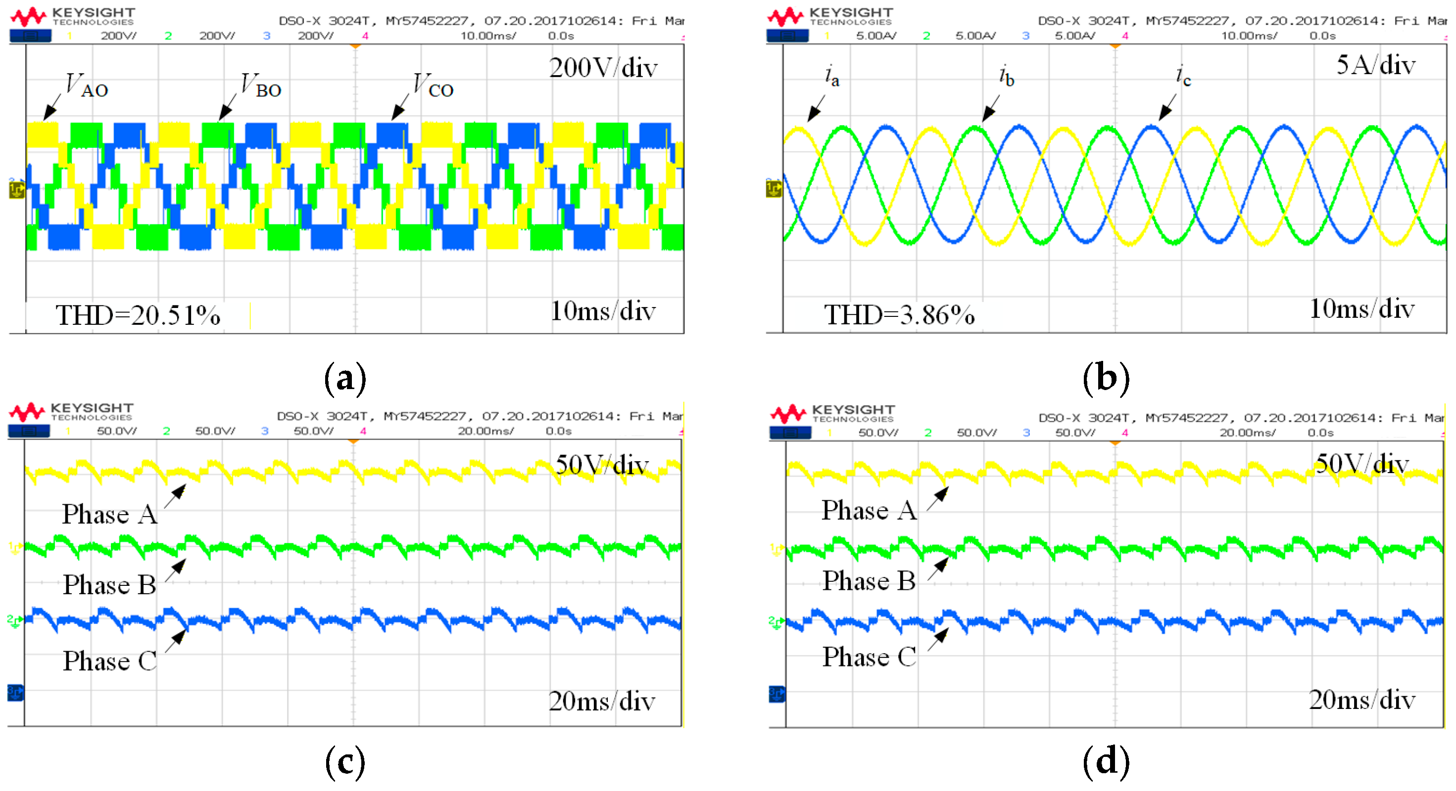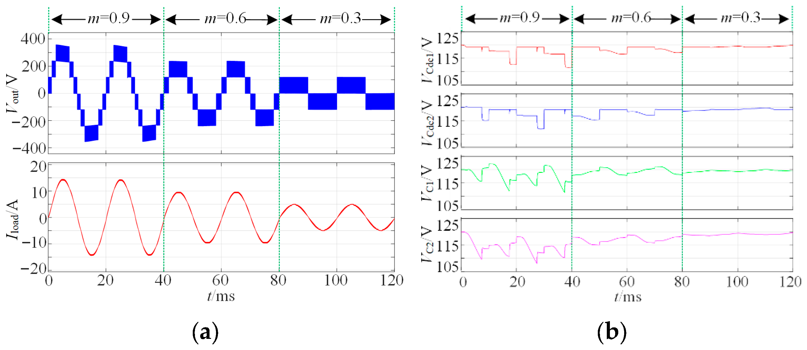 - Deng, F.; Yu, Q.; Wang, Q.; Zhu, R.; Cai, X.; Chen, Z. Suppression of DC-link current ripple for modular multilevel converters under phase-disposition PWM. IEEE Trans. Power Electron. 2020, 35, 3310–3324. [Google Scholar] [CrossRef]
