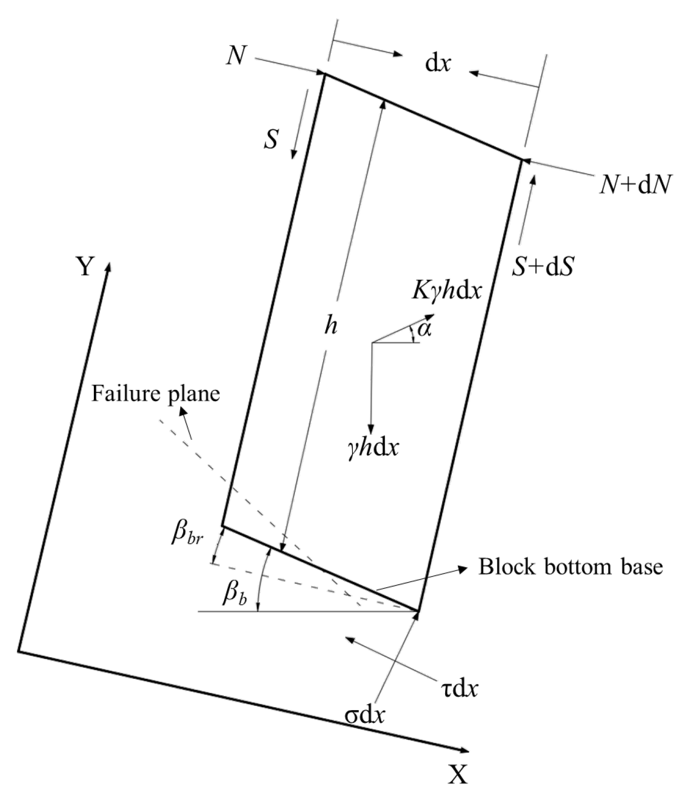 The rock blocks in the slope are regarded as micro-blocks, with a width of dx, when the spacing of dominant discontinuities in