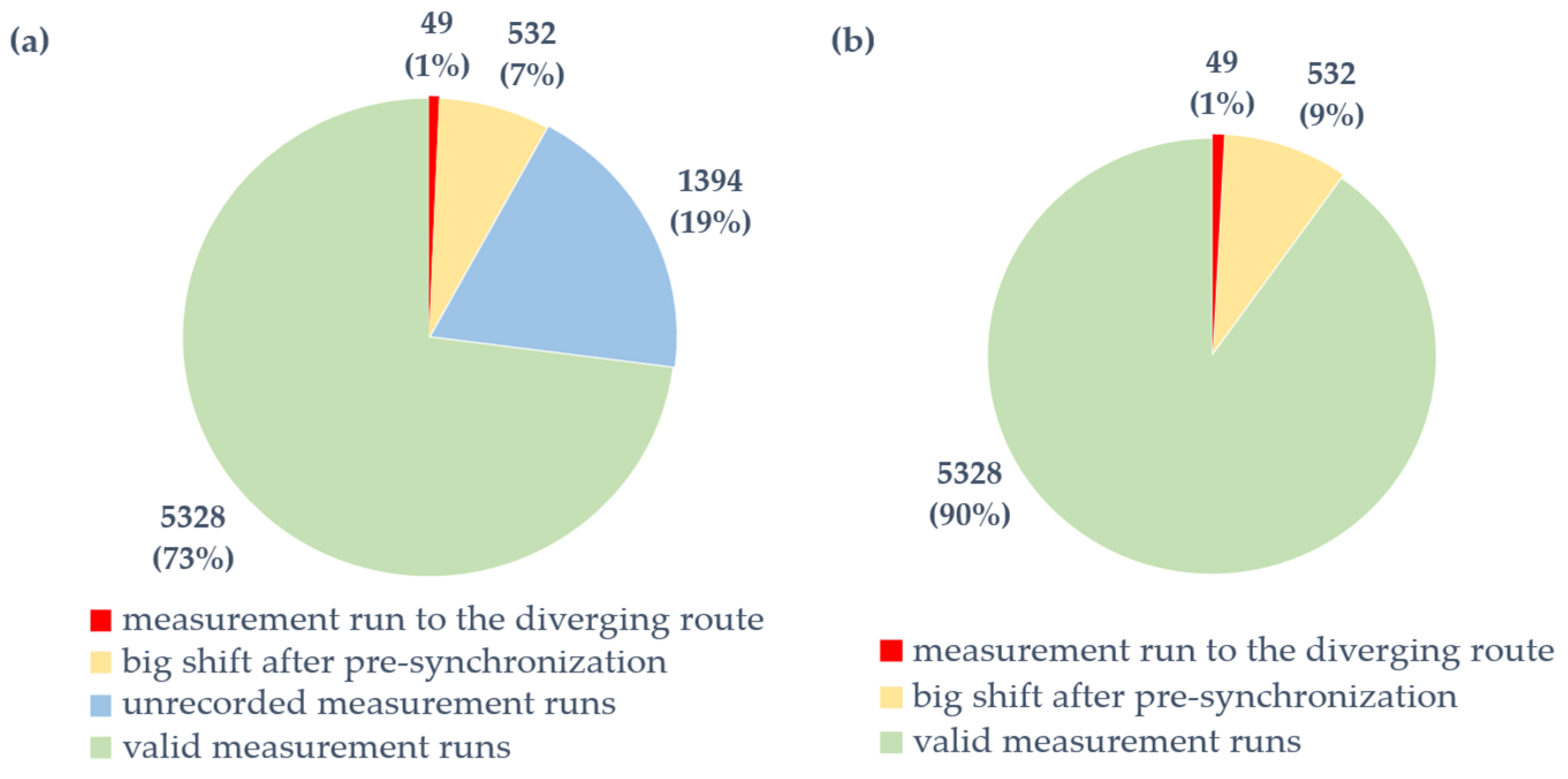 - Xu, P.; Sun, Q.; Liu, R.; Souleyrette, R.R. Optimal Match Method for Milepoint Postprocessing of Track Condition Data from Subway Track Geometry Cars. J. Transp. Eng. 2016, 142, 04016028. [Google Scholar] [CrossRef]