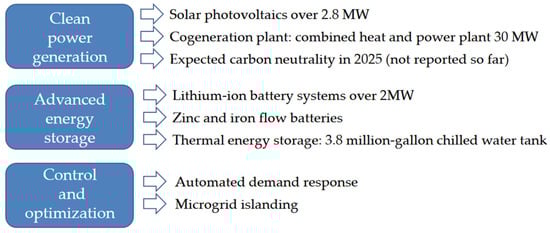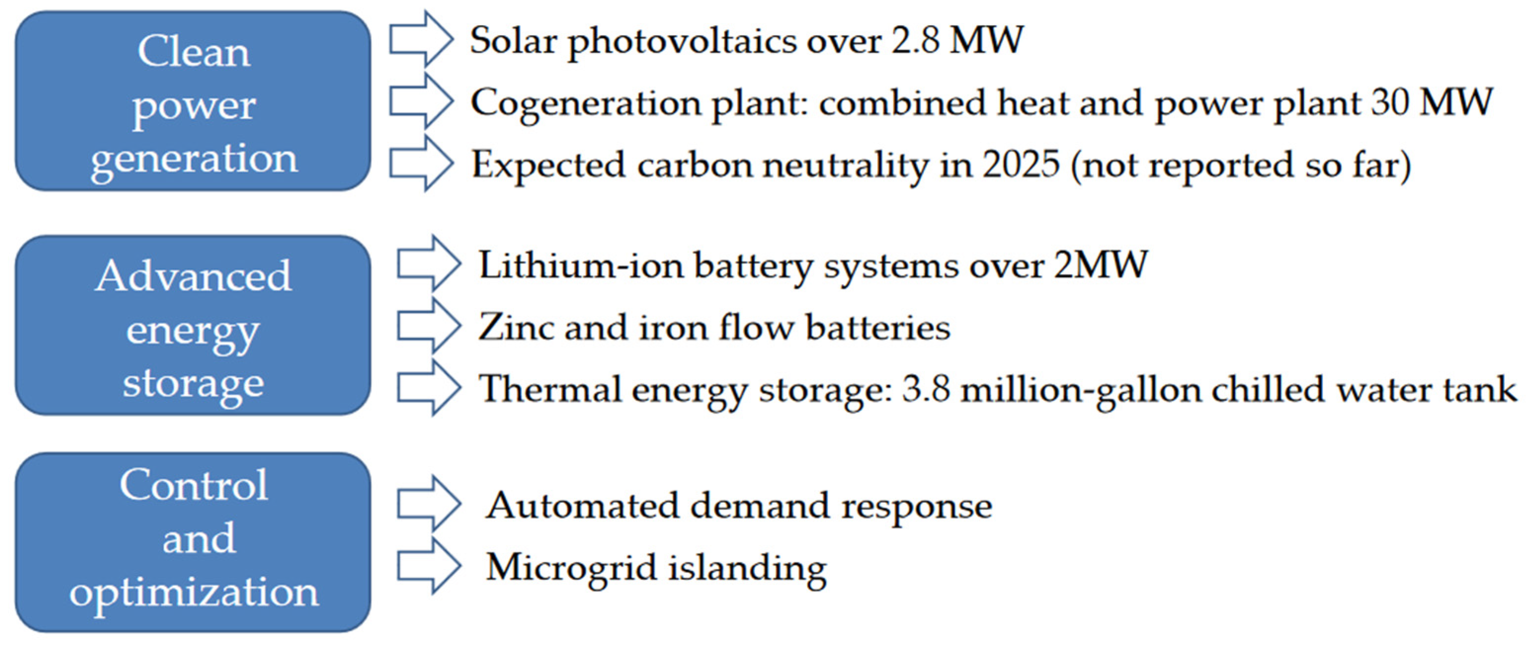 UC San Diego (La Jolla, CA, USA) operates a large campus microgrid (generation, storage, cogeneration, building loads) used as a living laboratory. Real-time telemetry, local control, and analytics are used for balancing, peak demand shaving, and renewable energy integration. Researchers/partners are testing algorithms for demand response, storage scheduling, and energy forecasting. The microgrid provides resilience and enables active generation/load optimization, improving overall system efficiency and reducing grid purchases during peak periods. The platform has validated studies demonstrating improved economics and emissions when analytics coordinates, among other things, peak energy demand on campus (approximately 55 MW). This demonstrates that complex, distributed energy resources benefit from rapid local control (edge) and coordinated optimization (analytics/cloud). Such on-campus microgrids provide a robust testing ground for algorithms before industrial-scale implementation (Figure 16) [74].