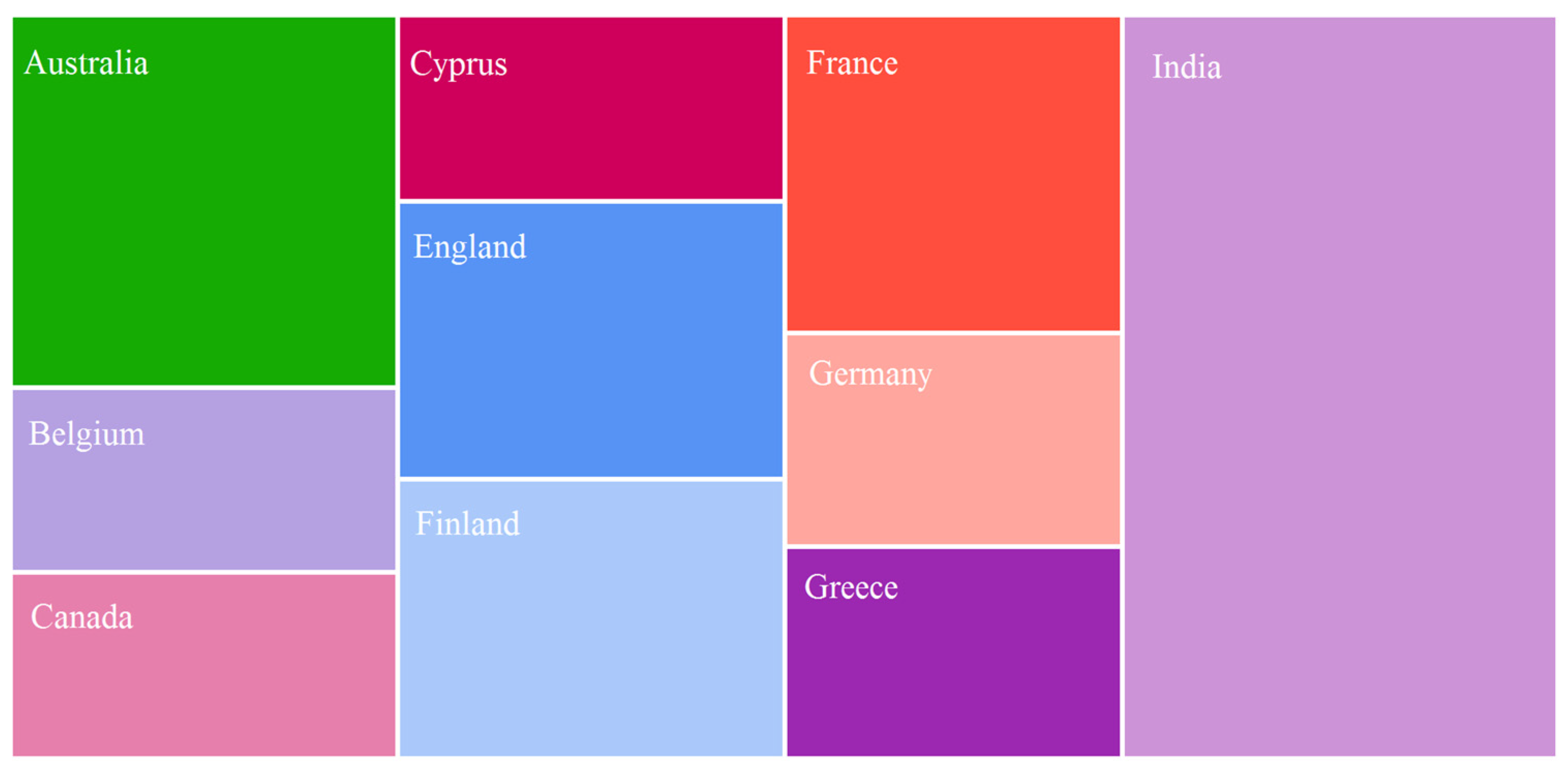 • Geographical distribution of research locations/publications, authors, their affiliations/research institutions, and publications with the greatest impact;