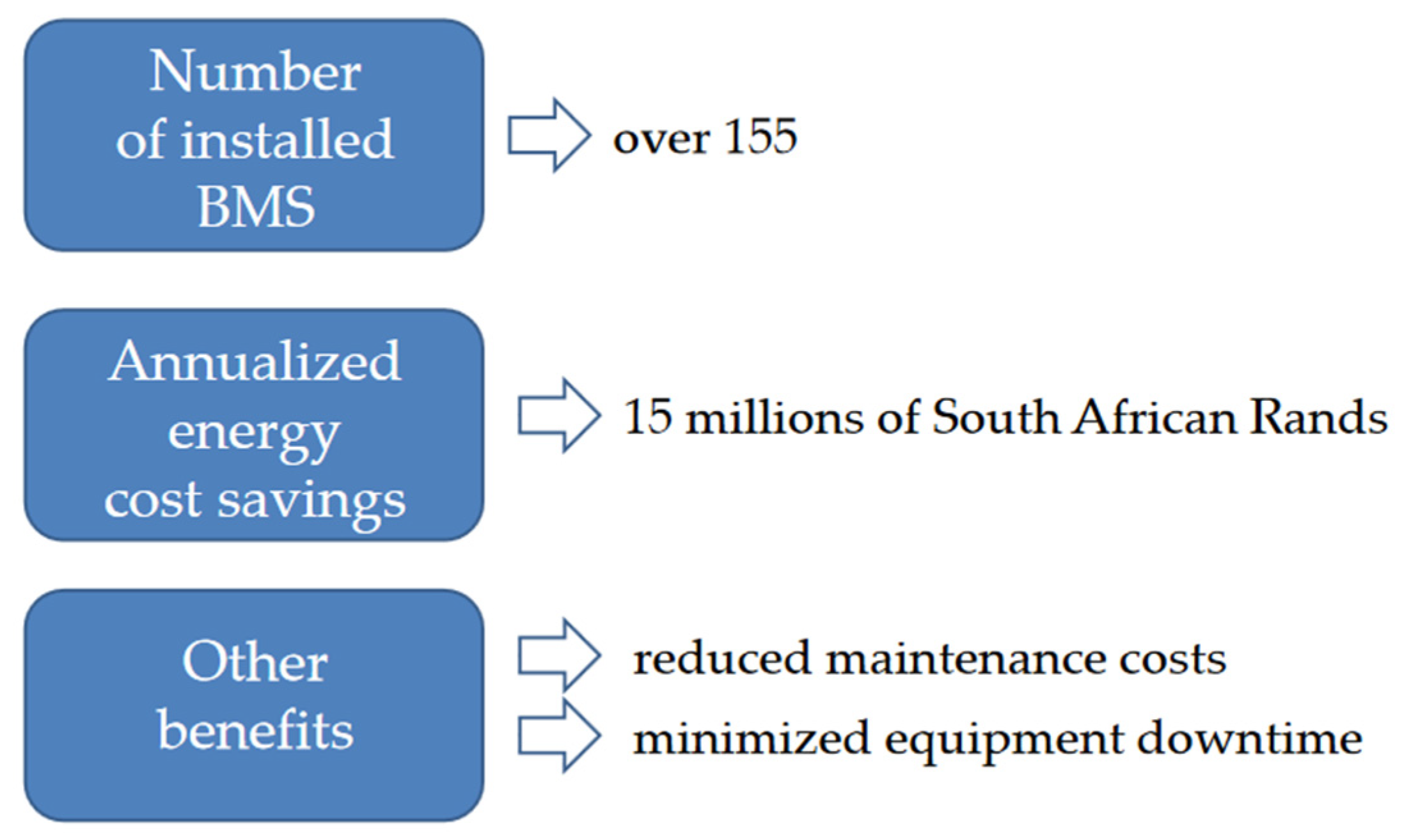 Schneider Electric’s (Rueil-Malmaison, France) EcoStruxure building management system combines IoT sensors/actuators, edge gateways, and cloud analytics to control HVAC, lighting, and building management systems. Implementations include a distributed building management system, predictive maintenance, and energy dashboards. Reported results from customer case studies include significant annual energy cost savings (e.g., reported by Massmart (Sandton, Republic of South Africa)) and operational benefits resulting from reduced downtime and improved control. While specific project numbers vary by location, Schneider documents reductions ranging from a few to tens of percent, depending on the scope of the modernization. This demonstrates that the platform approach: standardized IoT endpoints and edge computing for local resiliency, along with cloud analytics for trend analysis, scales well across portfolios and enables portfolio-level optimization (Figure 15) [73].
