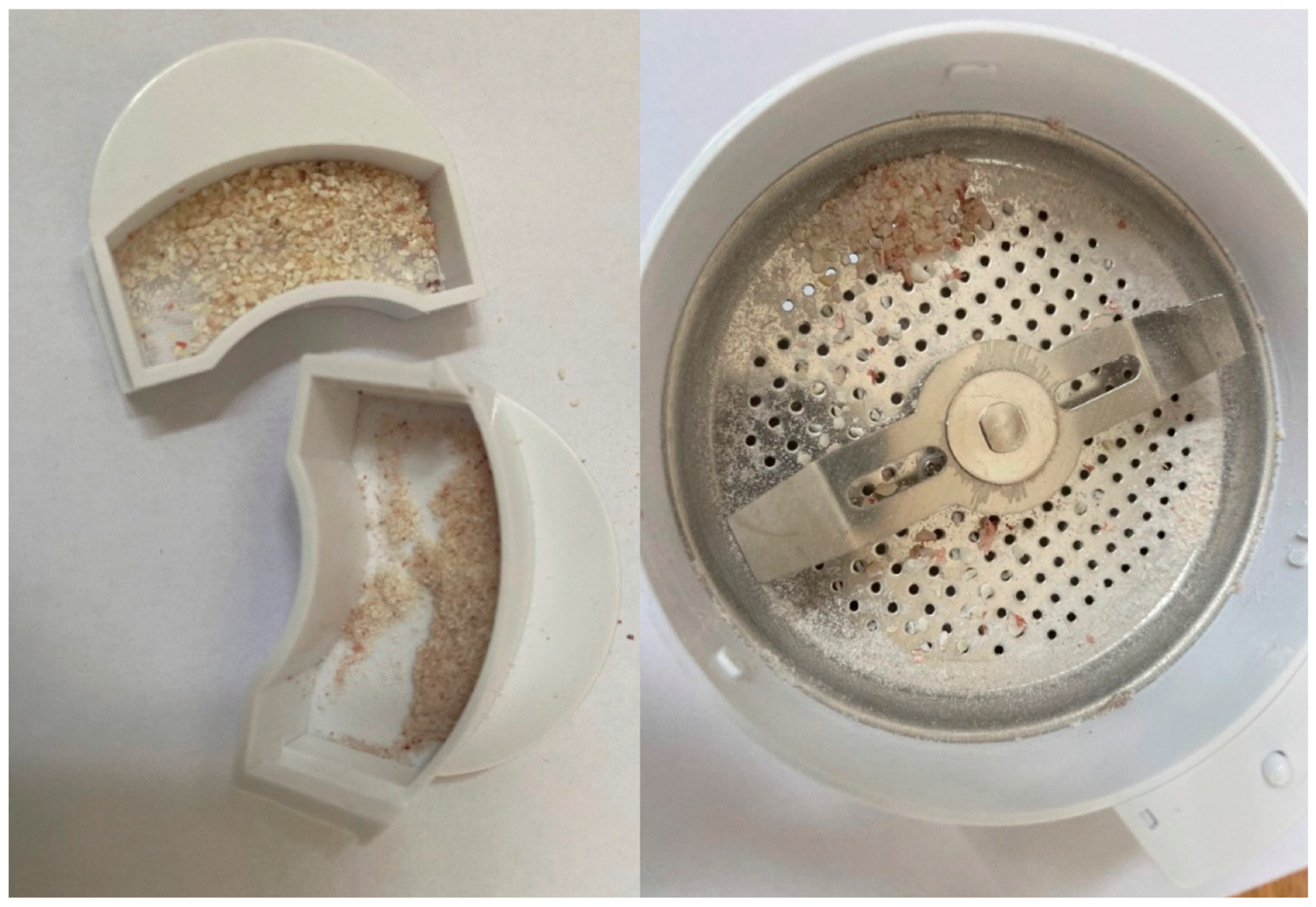 - Minetti, E.; Dipalma, G.; Palermo, A.; Inchingolo, A.D.; Viapiano, F.; Inchingolo, A.M.; Inchingolo, F. The Most Suitable System to Grind the Whole Tooth to Use It as Graft Material. Explor. Med. 2024, 5, 1–16. [Google Scholar] [CrossRef]