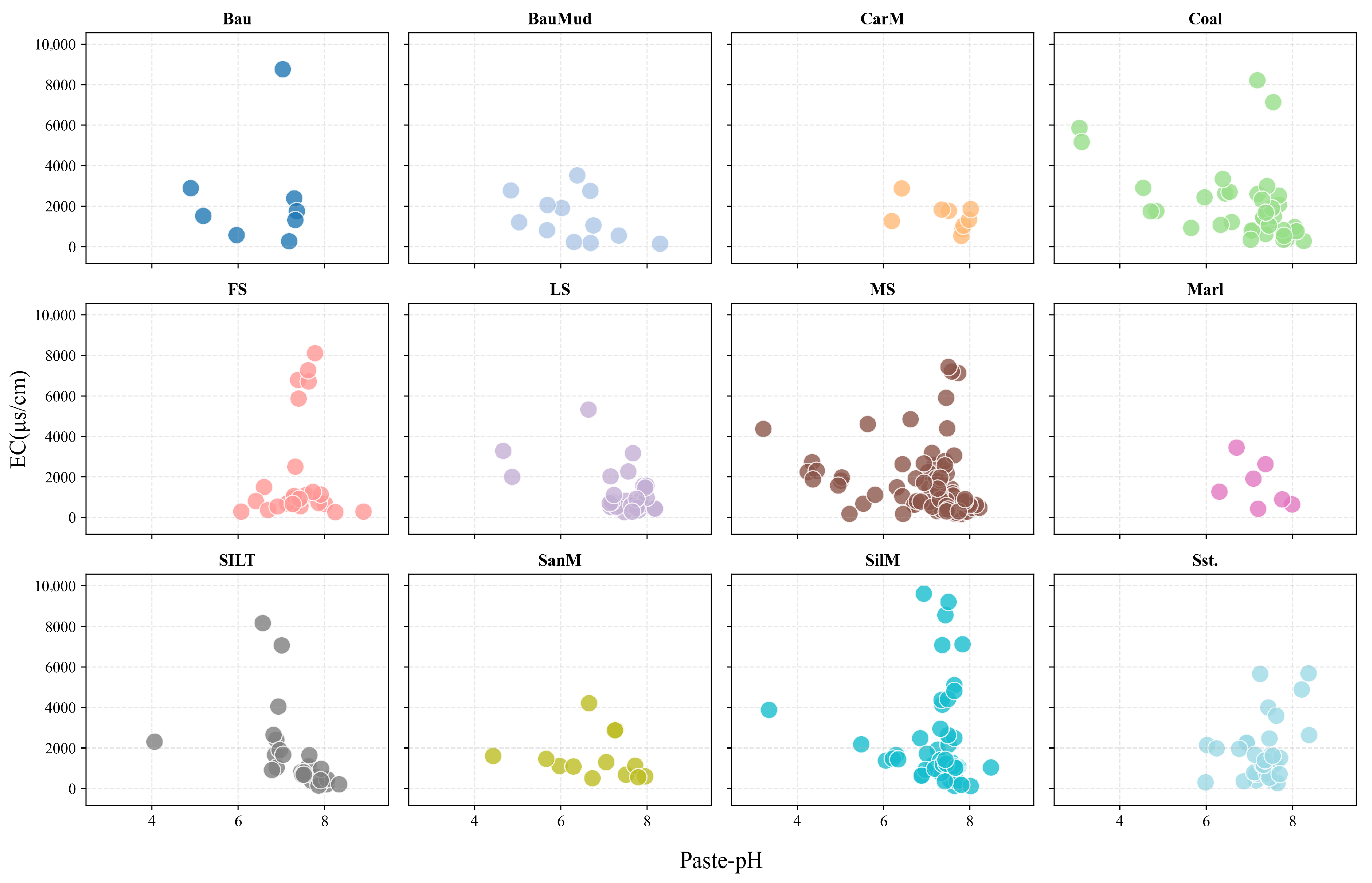 | Lithology | Shortform | Paste-pH | EC (μs/cm) | ||
