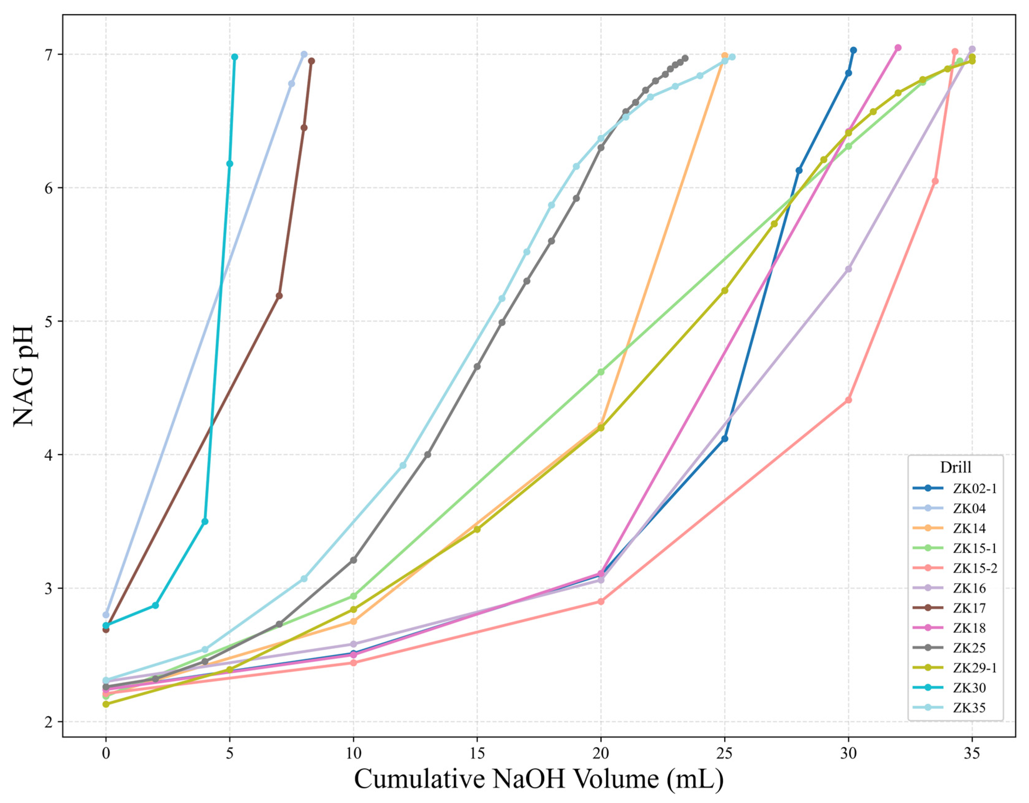 - Brookhian, M.; Golkar Hamzee Yazd, H.R.; Tavousi, M. An Investigation of Acid–Base Accounting Test to Predict Acid Mine Drainage at Sangan Iron Ore Mine in Khaf, Iran. Environ. Earth Sci. 2022, 81, 344. [Google Scholar] [CrossRef]
