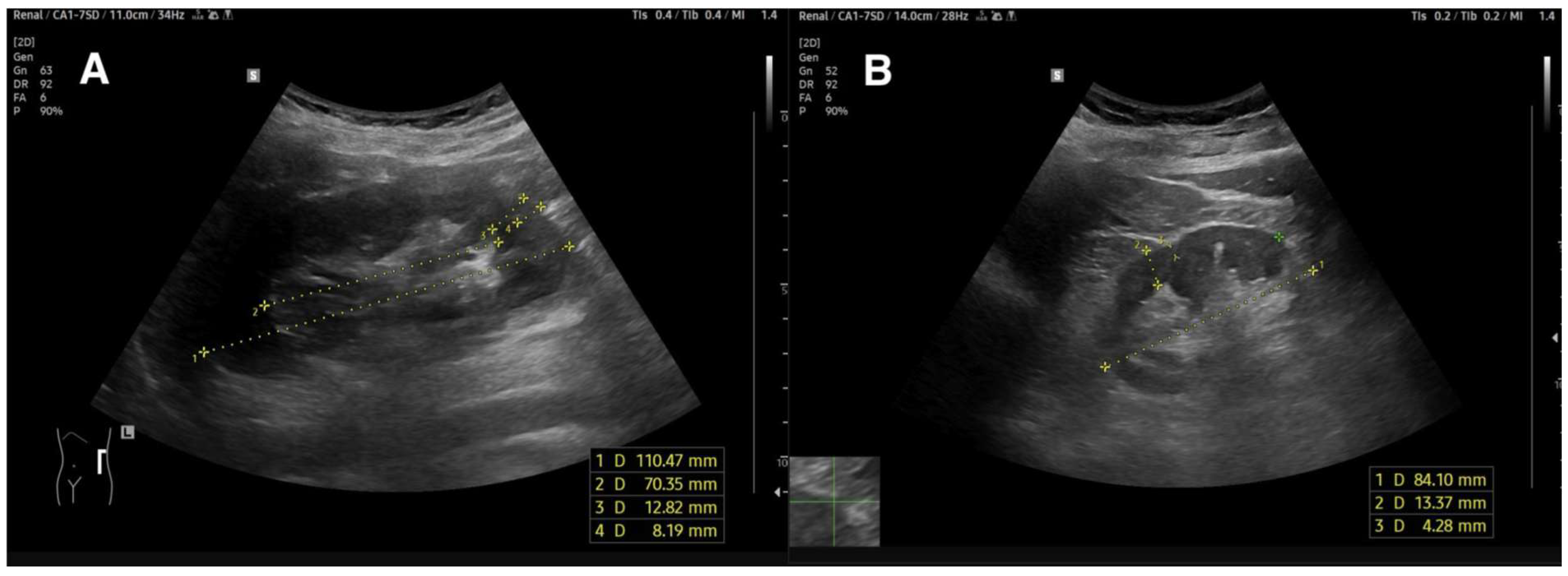 3.1. Two-Dimensional Renal Ultrasound