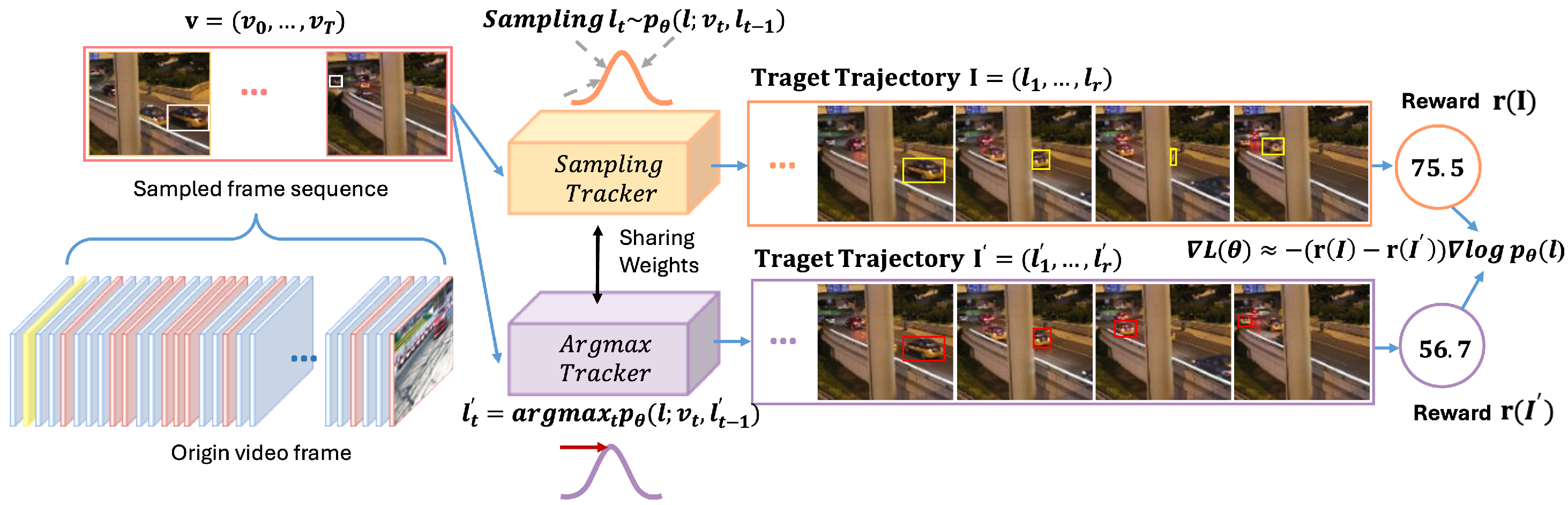 Figure 2. The tracker is optimized directly with respect to the sequence-level evaluation metric used at test time, thereby reducing the discrepancy between training and deployment. The objective function is defined as: