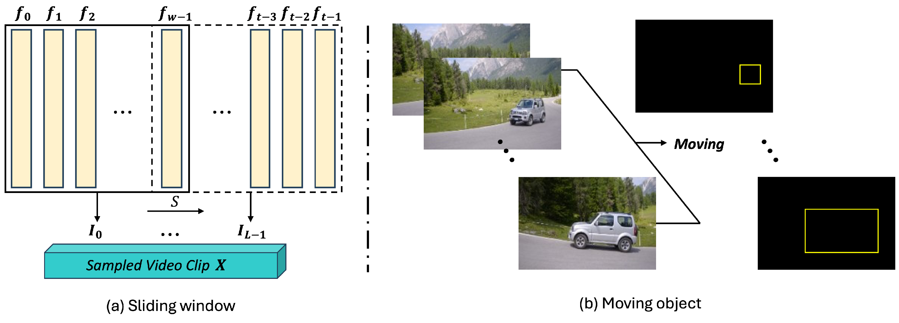 To address this limitation, we propose a sliding-window–based sampling strategy that integrates both spatial and temporal augmentation. This design enriches training diversity and strengthens spatiotemporal representation learning. In our sampling pipeline, both the temporal progression of the window and the stochastic spatial perturbations are governed by well-defined sampling ranges and probability distributions, ensuring that clip construction follows a consistent augmentation process.