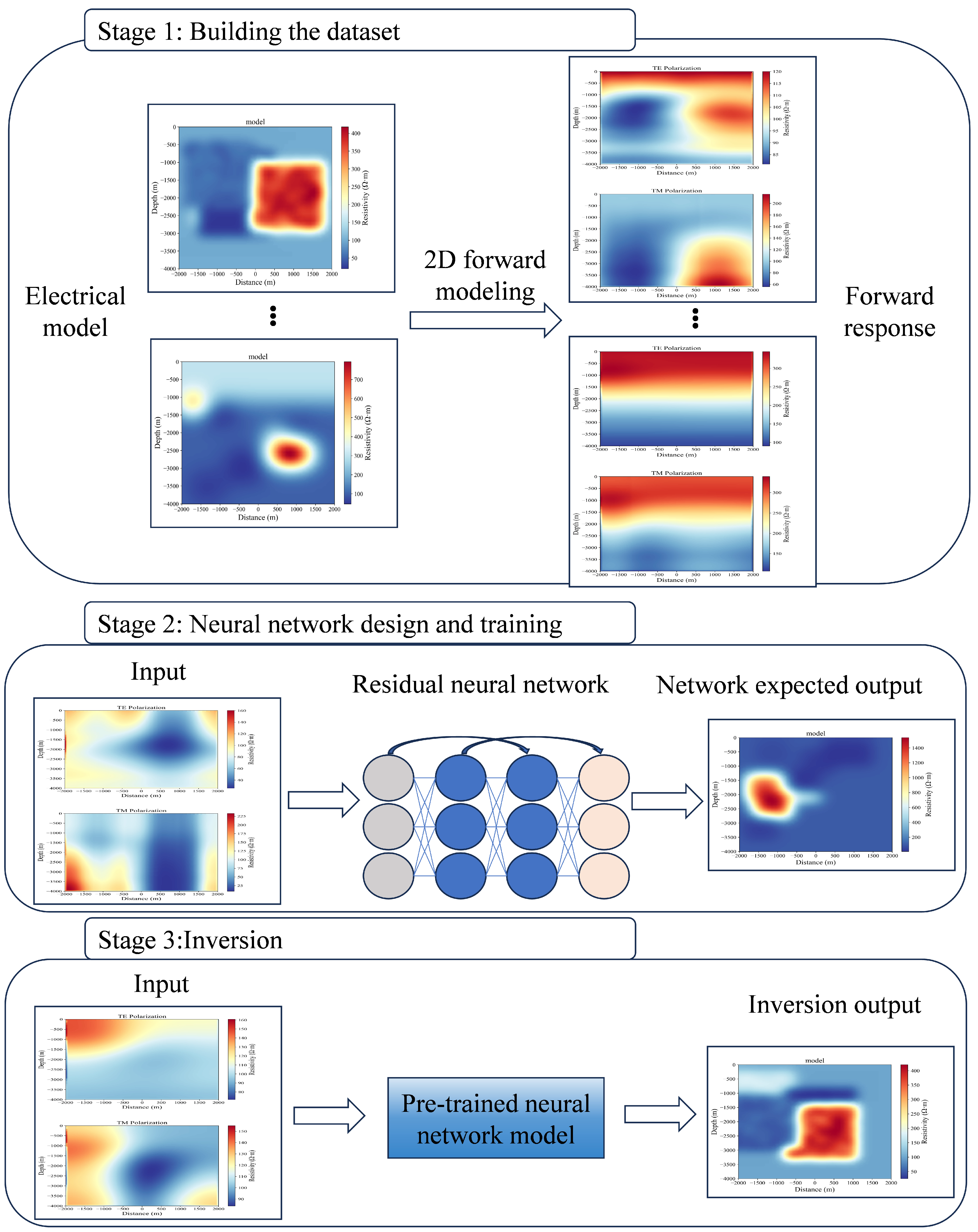 - Yu, J.H.; Tang, X.G.; Xiong, Z.T. Two-dimensional magnetotelluric inversion based on residual neural networks. Chin. J. Geophys. 2025, 68, 269–281. [Google Scholar]