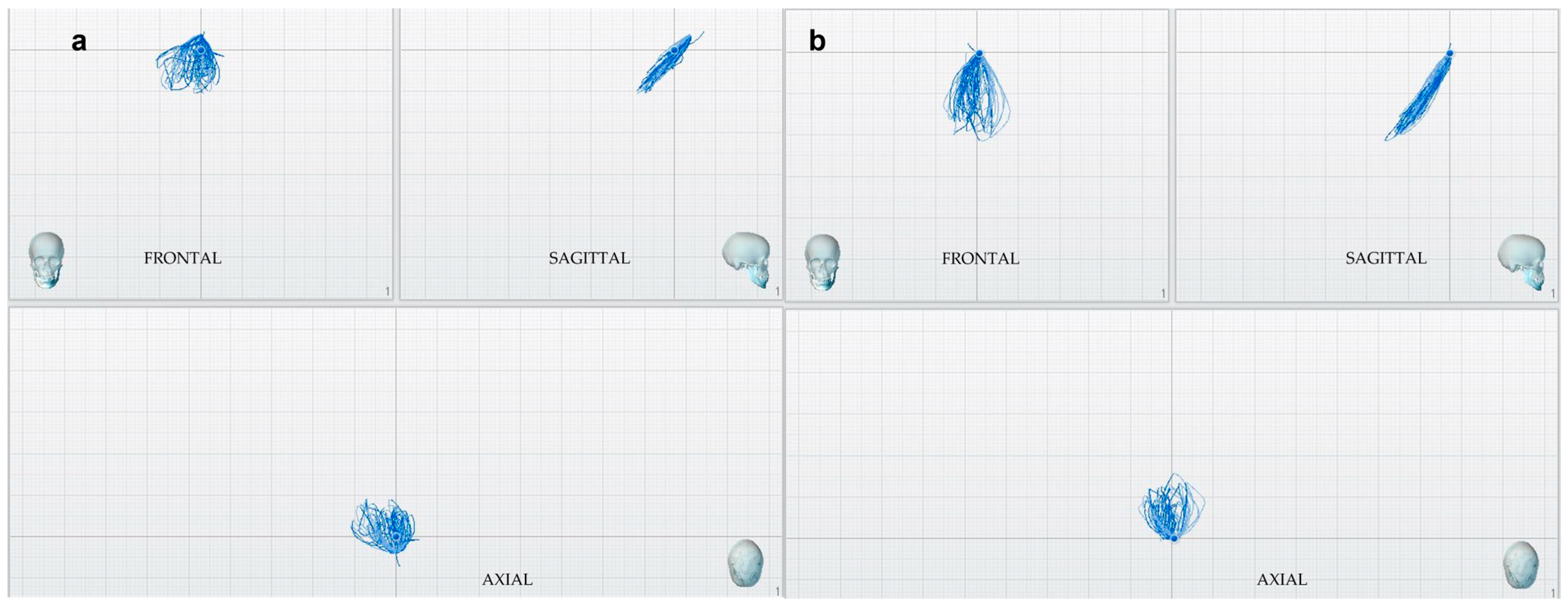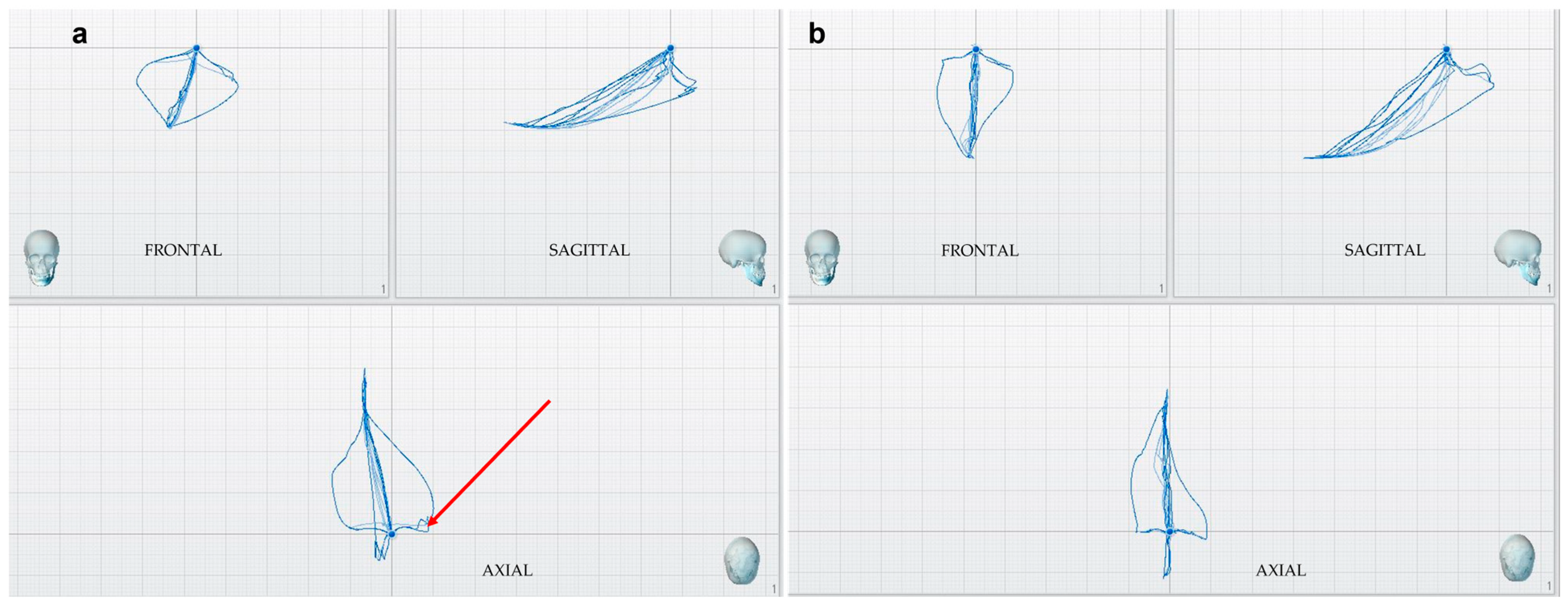 - Karaca, S.K.; Hekimoglu, C.; Akca, K. Digital occlusal analysis of bite registration with anteroposterior inclined head positions. J. Prosthodont. Res. 2025, 69, 562–568. [Google Scholar] [CrossRef]