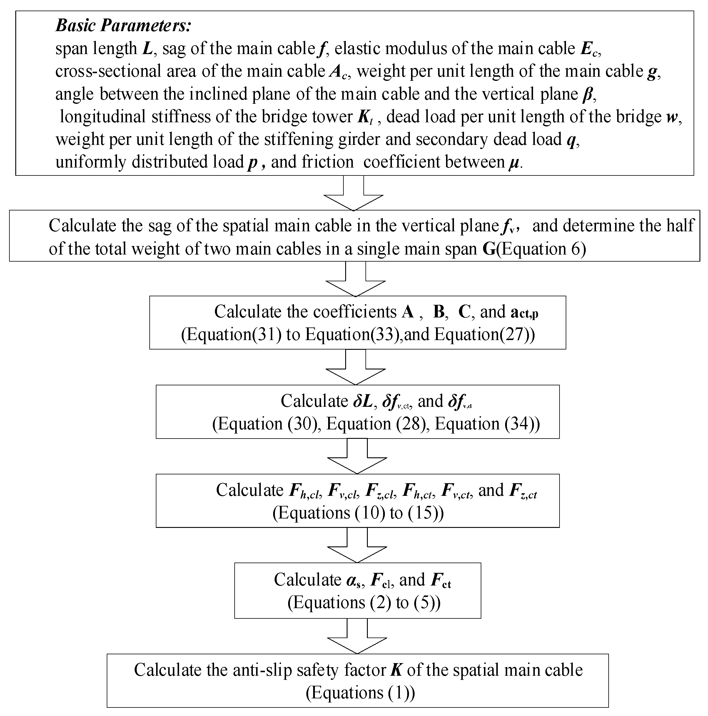 2.1. Calculation of the Slip Resistance Safety Factor for Spatial Main Cables