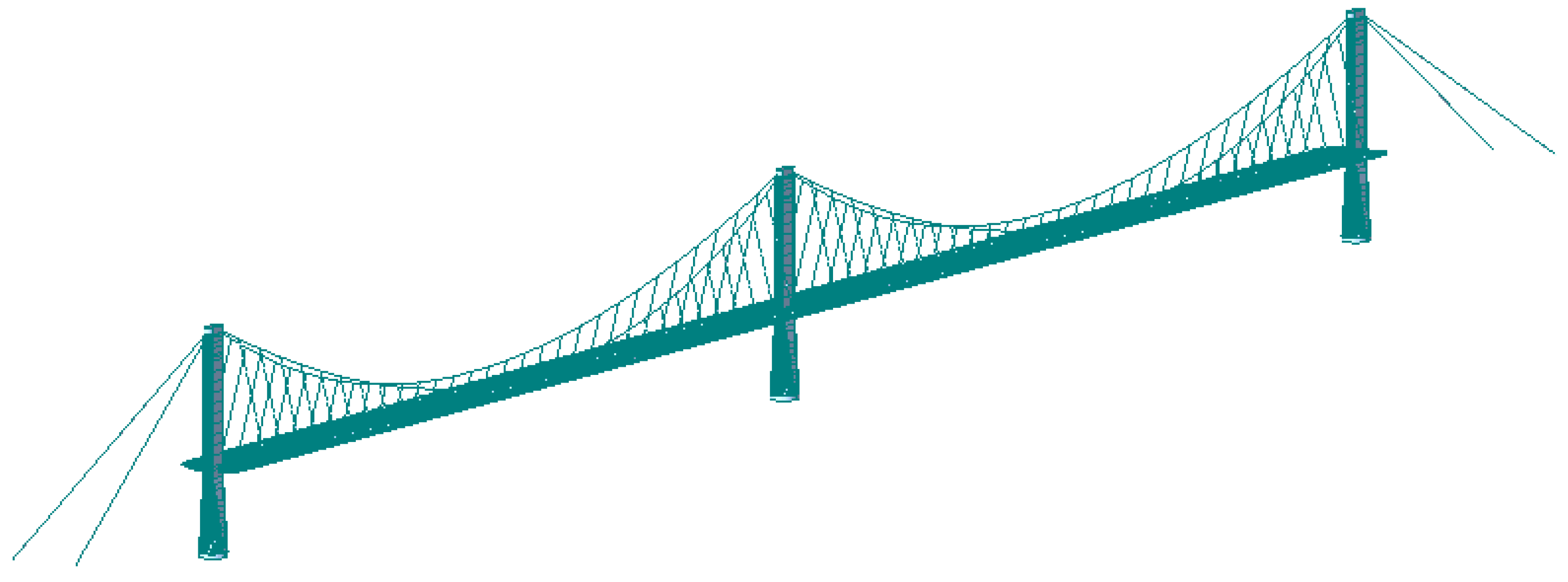Figure 8. Finite Element Model of a Three-Tower Suspension Bridge with Spatial Cables.