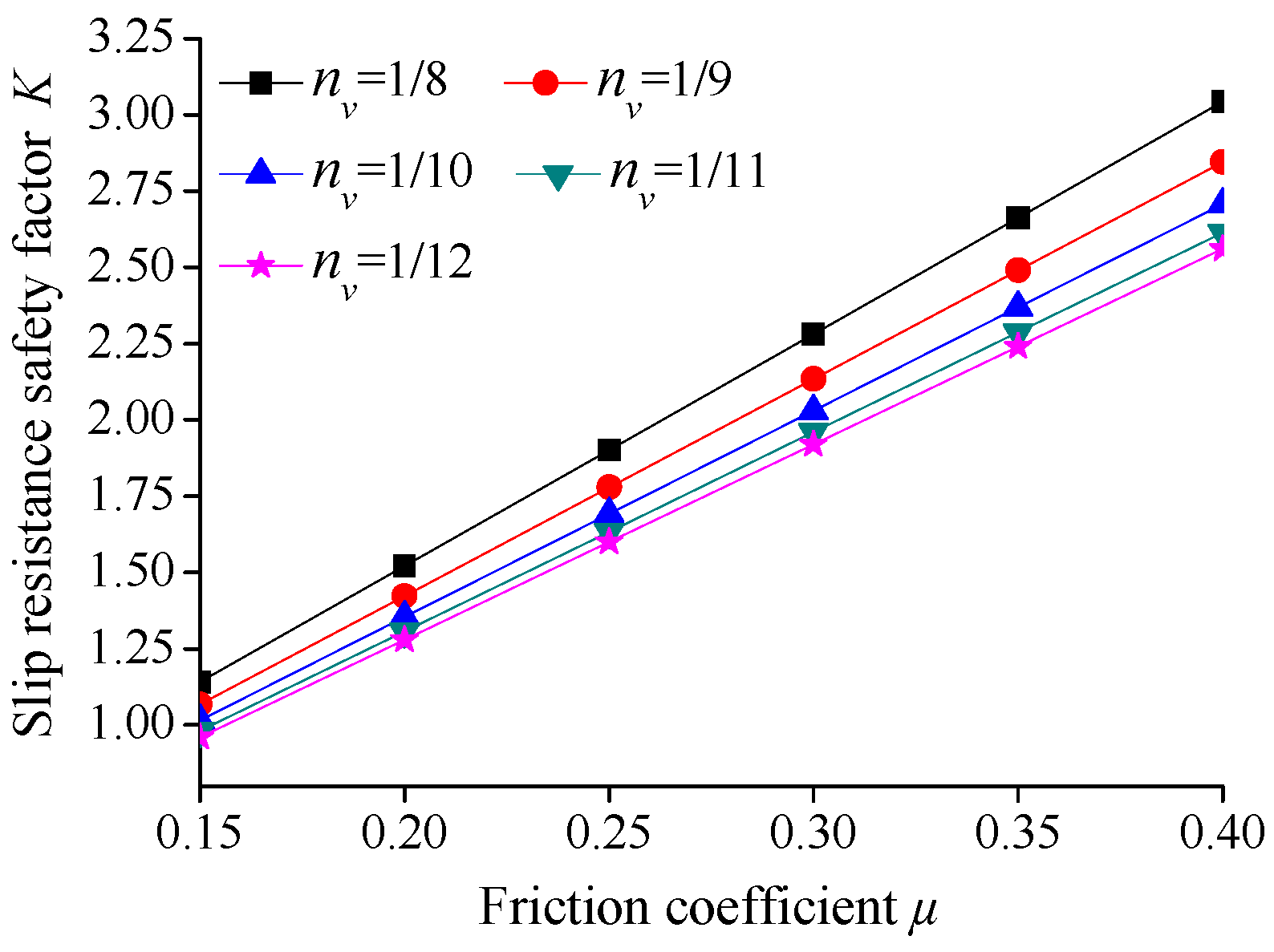 Figure 11. Influence of the friction coefficient on the anti-slip safety factor of the main cable.