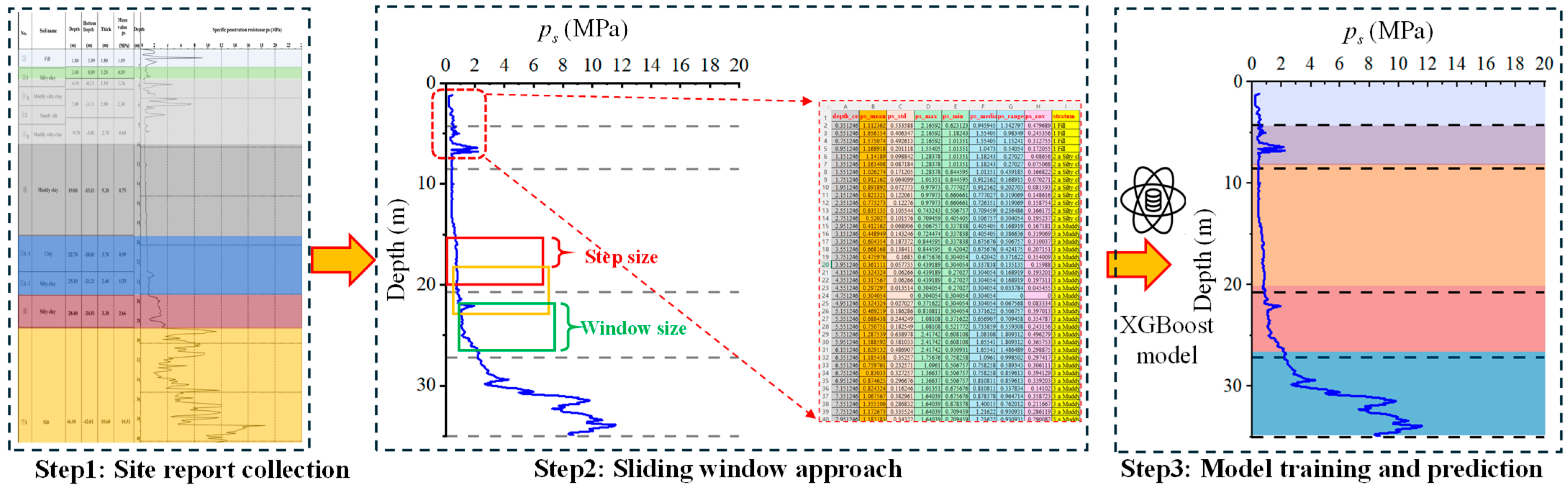 To capture the soil classification information embedded in CPT profiles and enhance the generalization capability of soil classification models, this study develops a multiclass soil classification models based on XGBoost with a sliding window approach using a dataset of 340 CPT soundings collected from Shanghai, China. This paper is structured as follows.