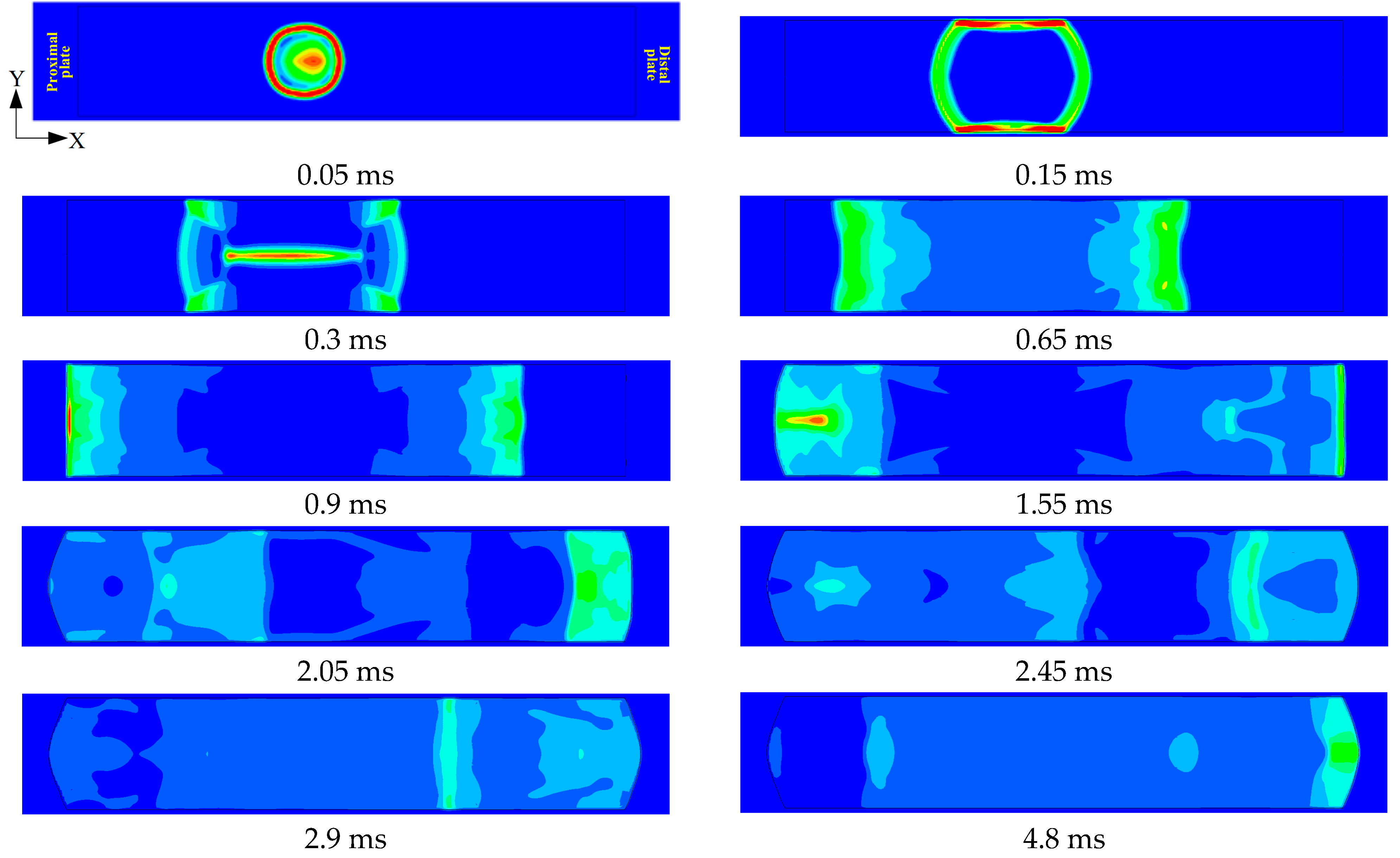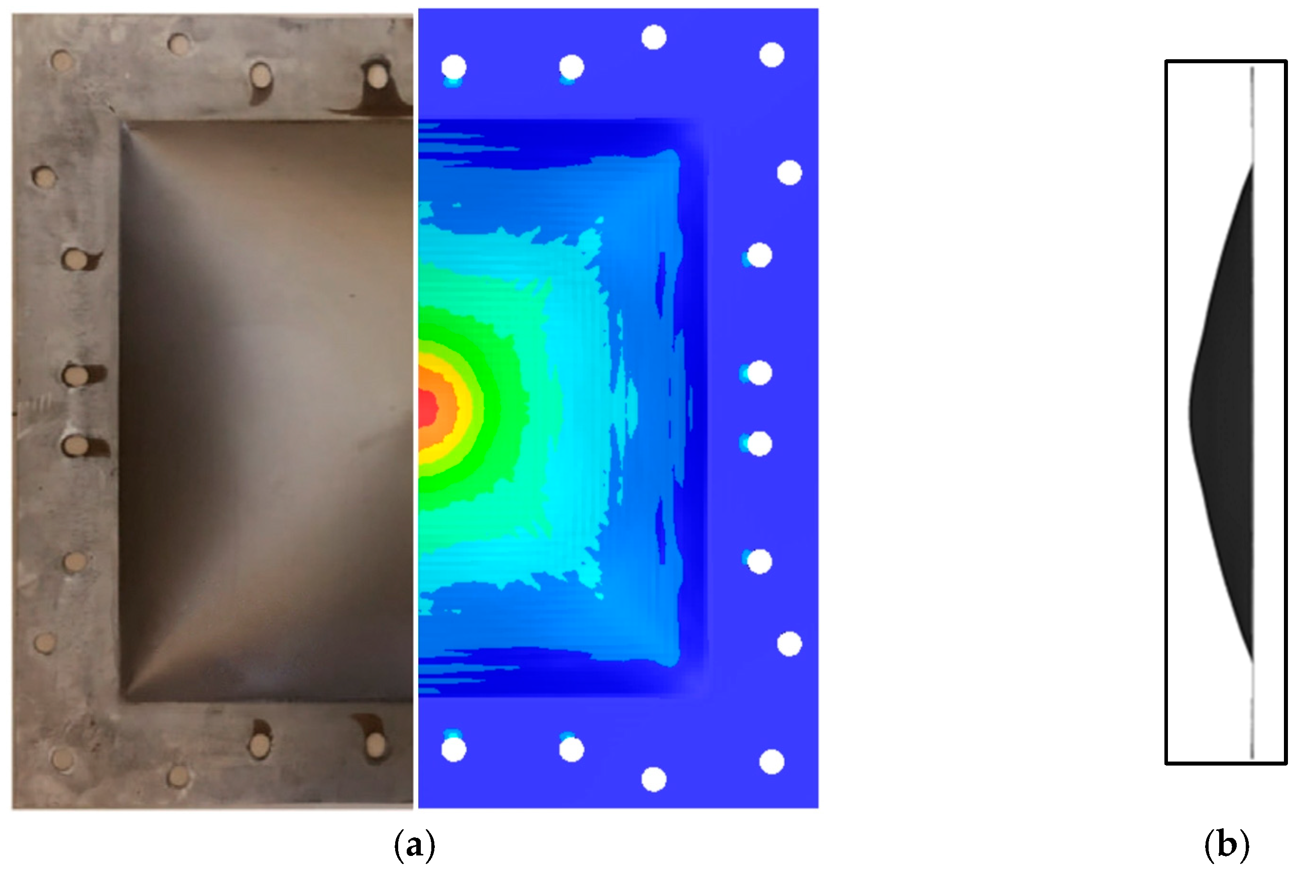 - Zhao, X.; Tiwari, V.; Sutton, M.A.; Deng, X.; Fourney, W.L.; Leiste, U. Deformation Scaling of Circular Plates Subjected to Dynamic Loading. Procedia IUTAM 2012, 4, 196–205. [Google Scholar] [CrossRef]