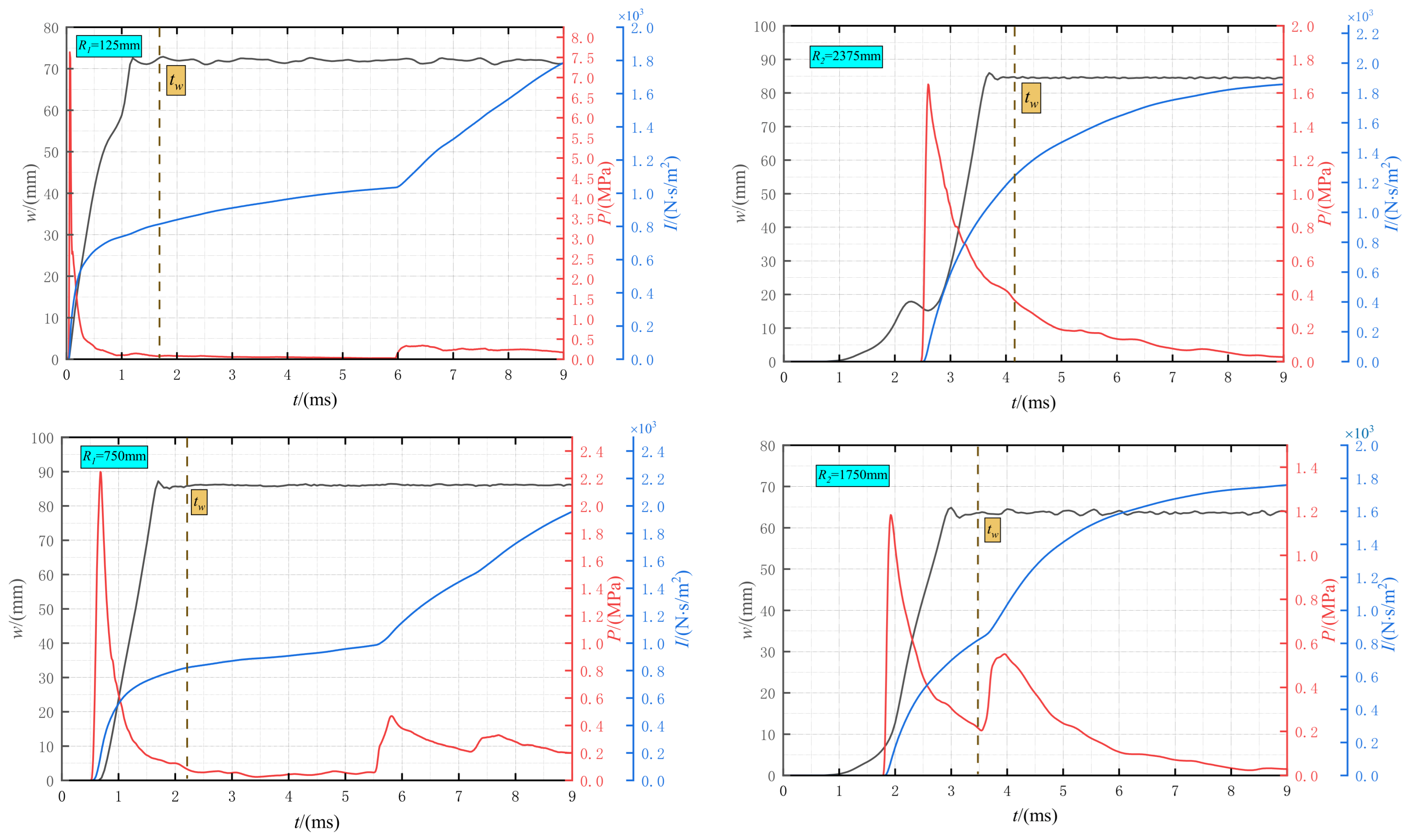 - Yuan, Y.; Li, X.D.; Zhang, C.J.; Tan, P.J.; Chen, P.W. Impulse saturation in metal plates under confined blasts. Int. J. Impact Eng. 2022, 168, 104308. [Google Scholar] [CrossRef]