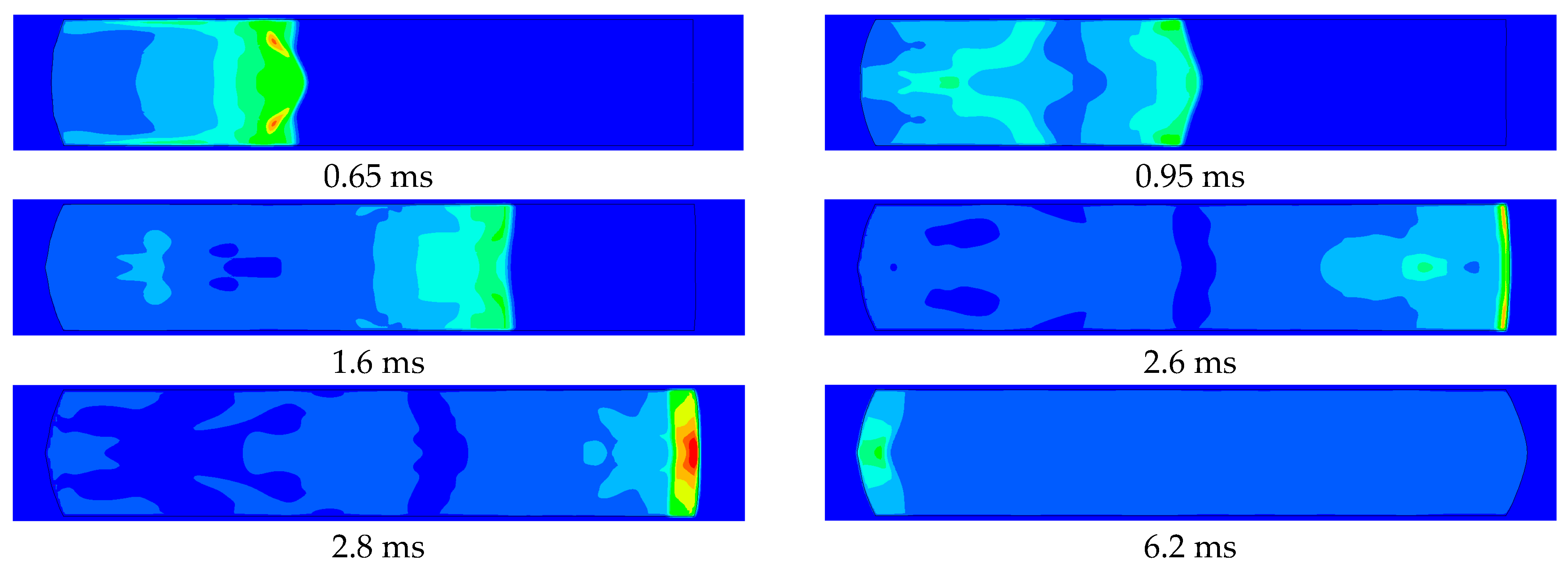 - Wang, C.H.; Wang, S.S.; Zhang, J.X. Pressure load characteristics of nonideal explosives in a simulation cabin. Shock Vib. 2019, 2019, 6862134. [Google Scholar] [CrossRef]
