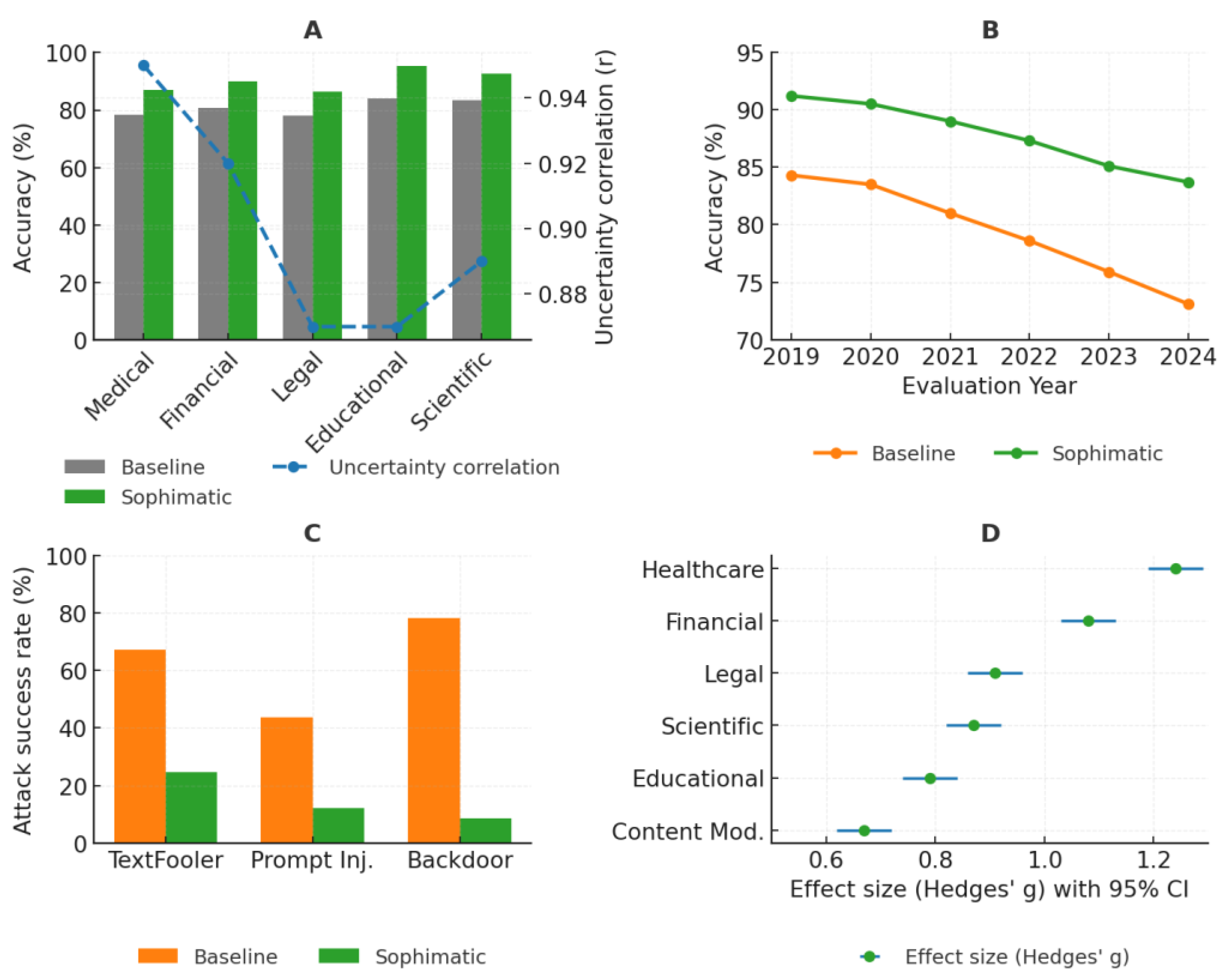 | Domain | Sample Size | Baseline | Sophimatic | Improvement | Uncertainty Corr. |