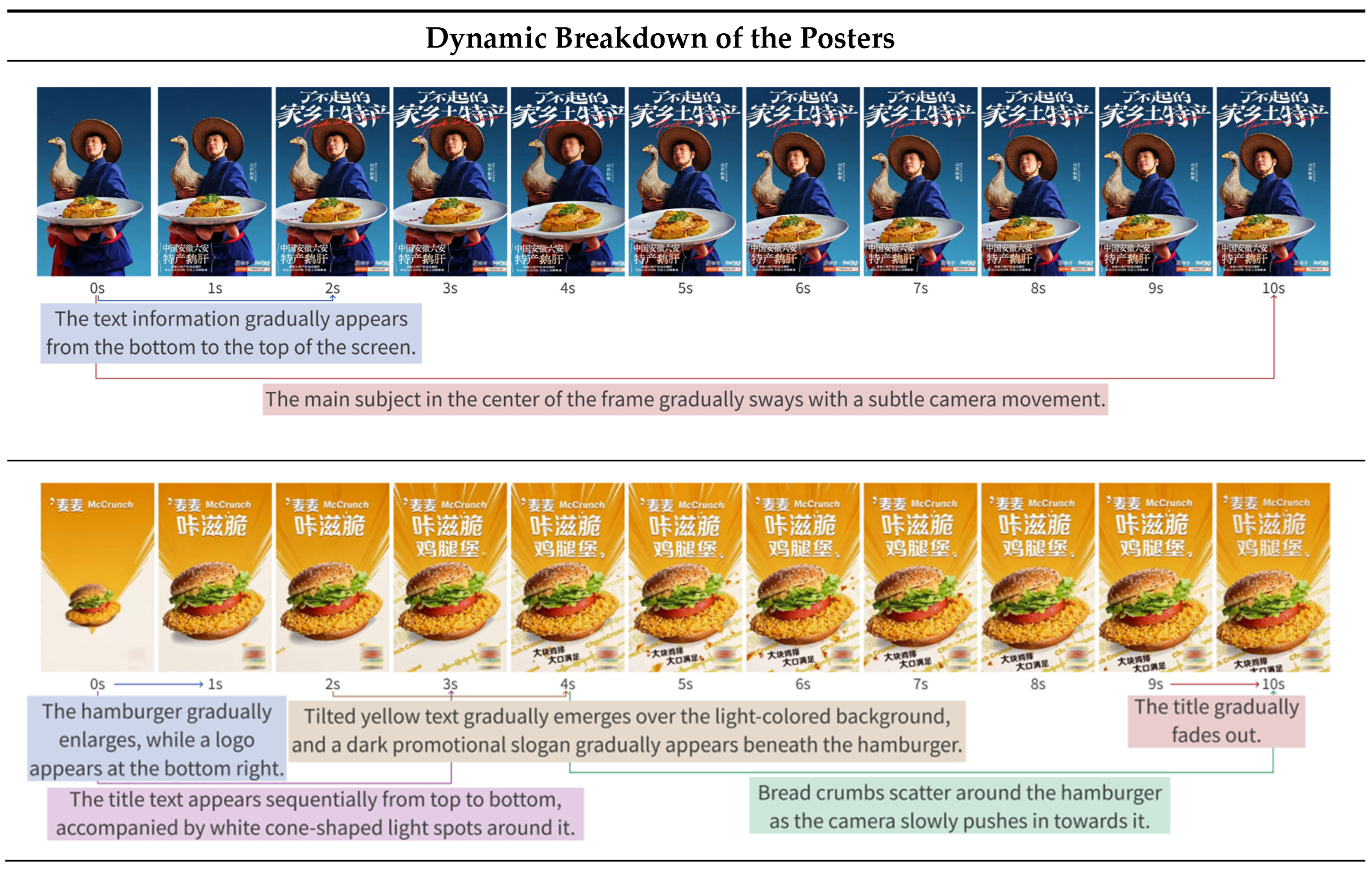 Dynamic visual design demonstrates considerable advantages in information transmission and attention guidance. Research indicates that dynamic elements can effectively enhance visual search efficiency and information recall. This has been validated in the context of memorising health information [1], solving mathematical problems [2], evaluating food sensory attributes [3], providing first aid training [4], and delivering emotional interventions for children with autism [5]. Furthermore, Rayburn-Reeves et al. provided crucial evidence for understanding how dynamic interactive competition across cues shapes behavioural choices in real time through their study of animal behaviour [6]. Relevant technical frameworks have also been applied to areas such as the generation of cultural posters [7]. However, dynamic effects have limitations: they offer no benefit in certain prospective memory tasks [8] and may negatively impact visual working memory by increasing visual complexity [9].