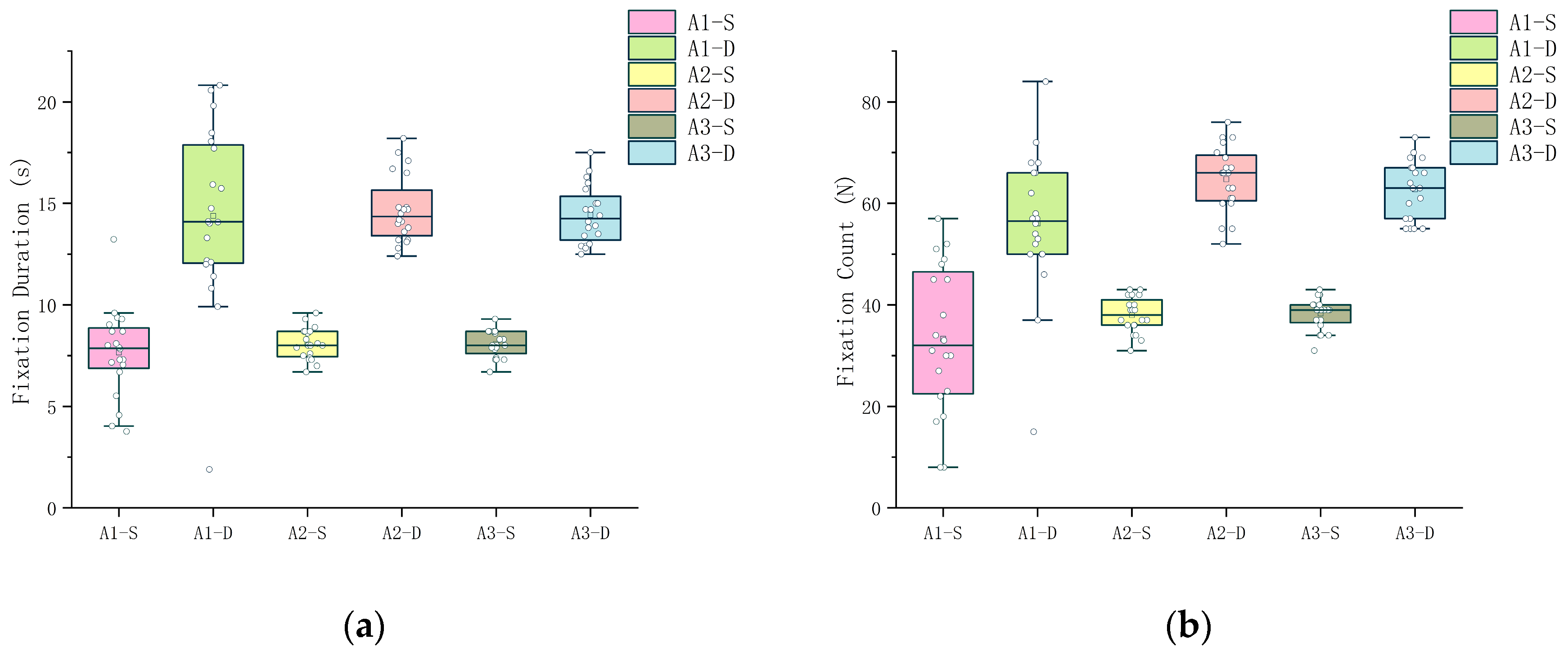 3.1.1. Analysis of Participants’ Attention to Static and Dynamic Posters