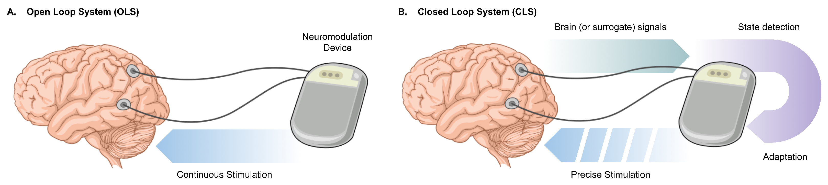 | DBS | OLS with CLS capability | Adjunctive therapy (CE 2010 (EU); FDA 2018 (US)) [43,66] | Percept™ PC |
