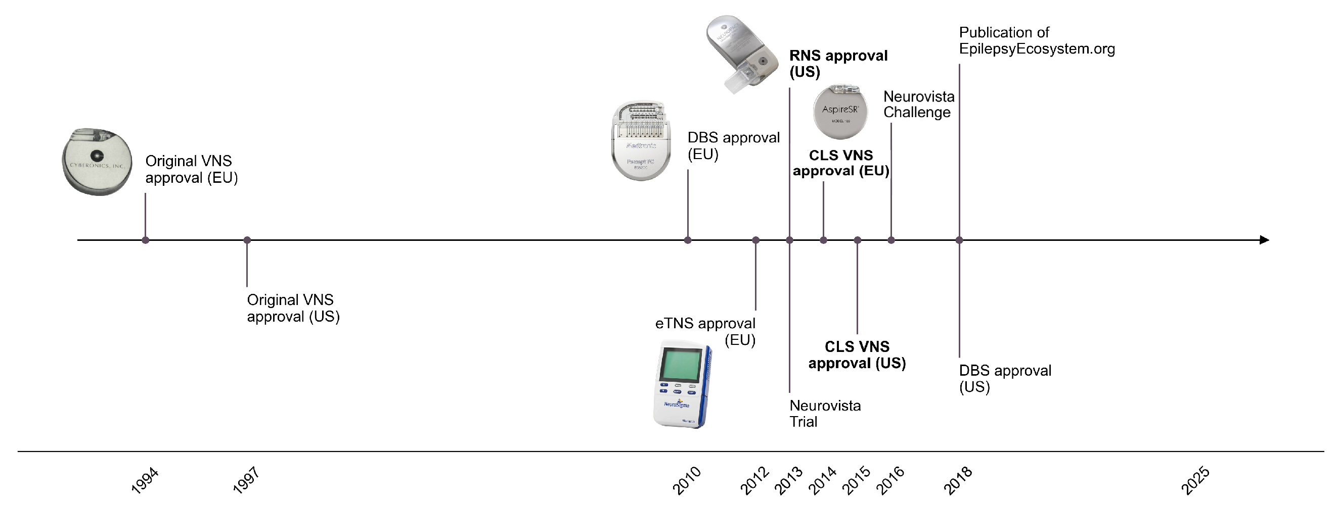 | RNS | CLS | Adjunctive therapy (FDA 2013 (US) [67]) | NeuroPace RNS® System |