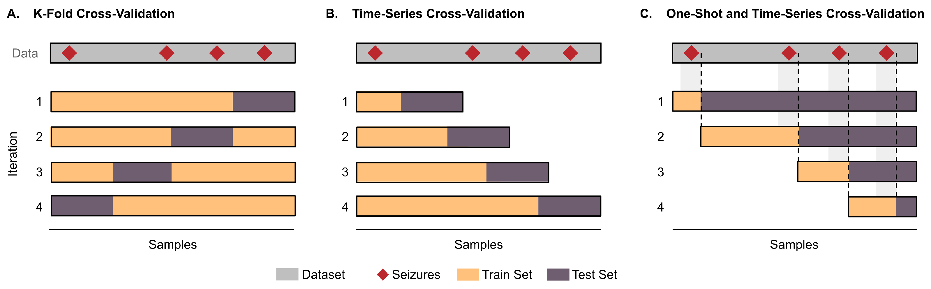 - Pale, U.; Teijeiro, T.; Atienza, D. Importance of methodological choices in data manipulation for validating epileptic seizure detection models. In Proceedings of the 2022 44th Annual International Conference of the IEEE Engineering in Medicine & Biology Society (EMBC), Sydney, Australia, 24–27 July 2023; pp. 1–7. [Google Scholar] [CrossRef]