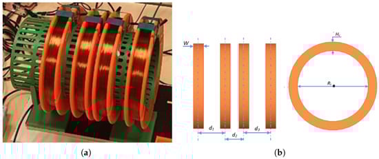 - Beiranvand, R. Effects of the Winding Cross-Section Shape on the Magnetic Field Uniformity of the High Field Circular Helmholtz Coil Systems. IEEE Trans. Ind. Electron. 2017, 64, 7120–7131. [Google Scholar] [CrossRef]