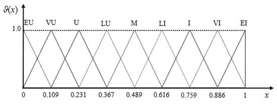 where (l, m, u) is determined according to the partition triangle fuzzy set semantic procedure described above.