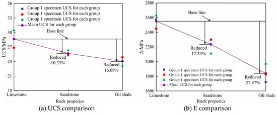 Comparison of UCS and E of rock–coal combinations with different rock properties.