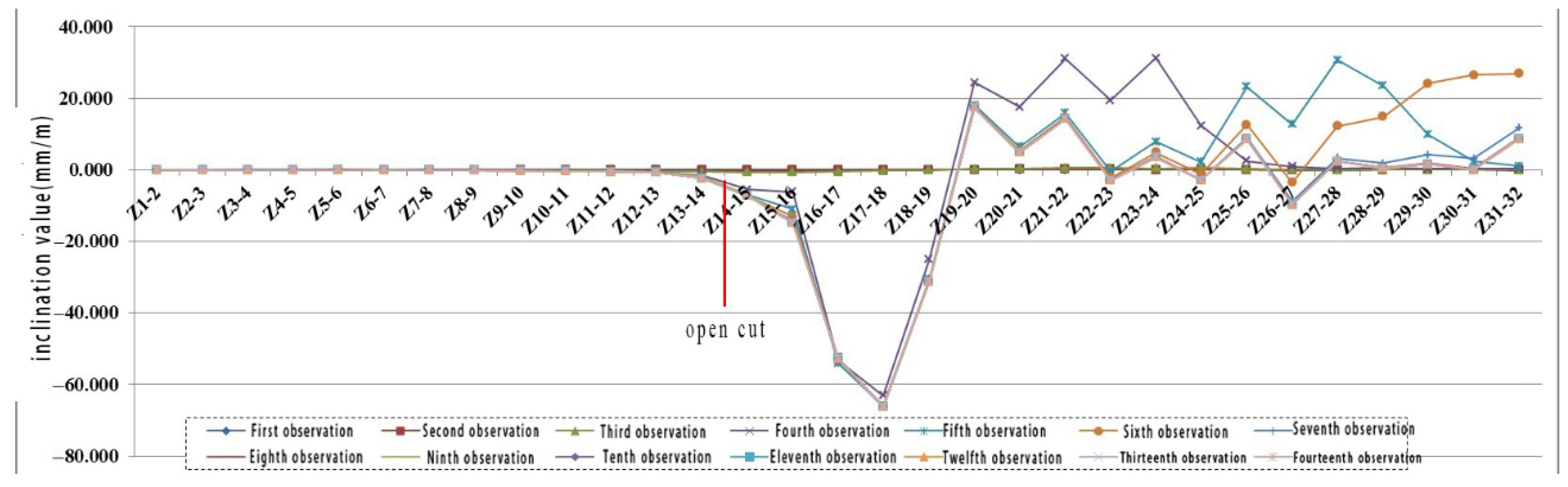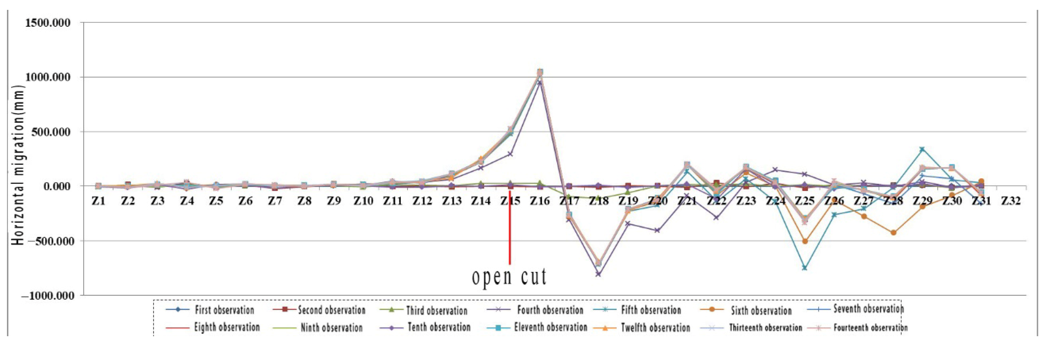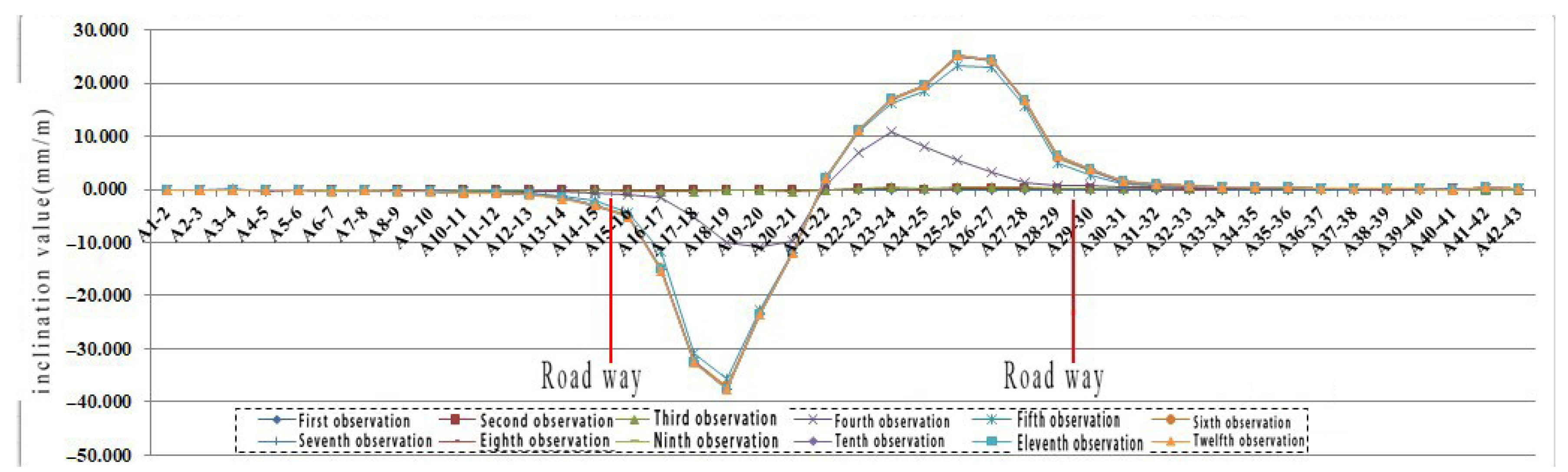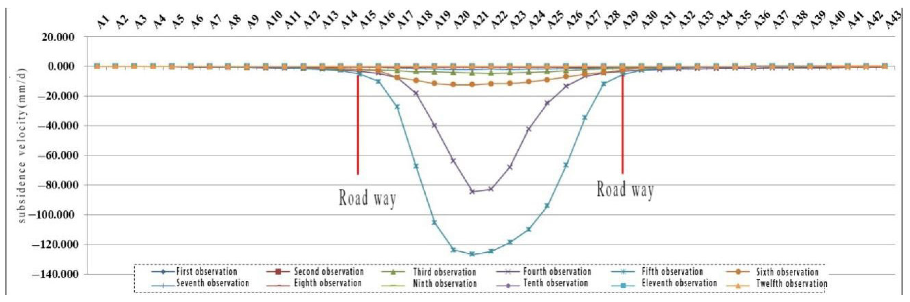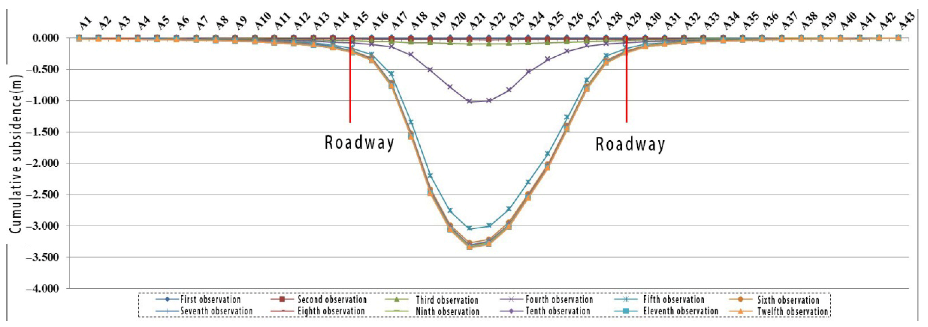 5.3.2. Study on Bedrock and Surface Movement in Tendency Direction (Line A)