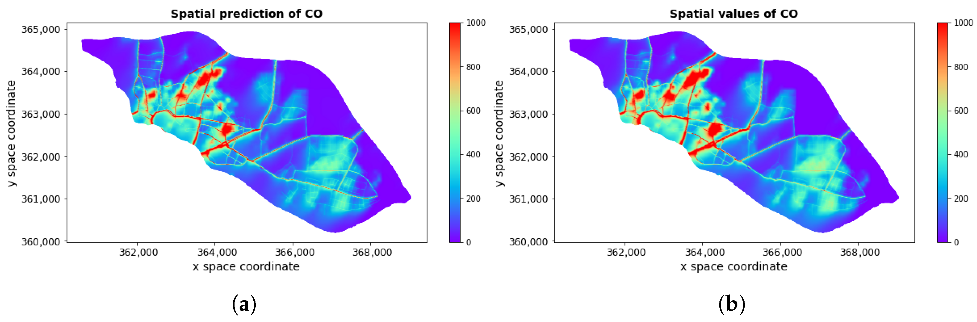 3.3. Spatiotemporal Prediction Results for CO